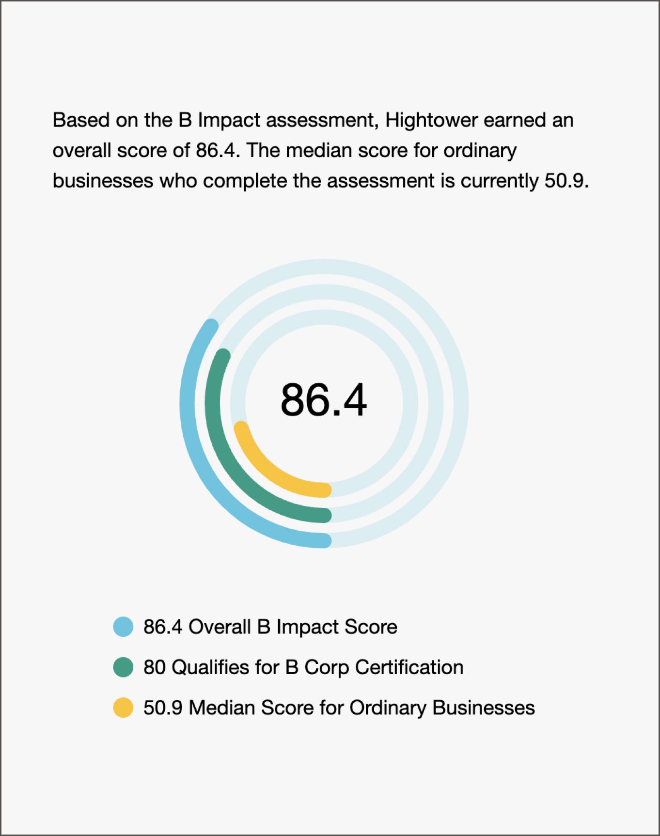 By choosing to support a B Corp like Hightower, you are actively contributing to a global movement for positive change. Our commitment to social and environmental responsibility means that your investment in our products and services helps us drive meaningful impact for people and the planet.