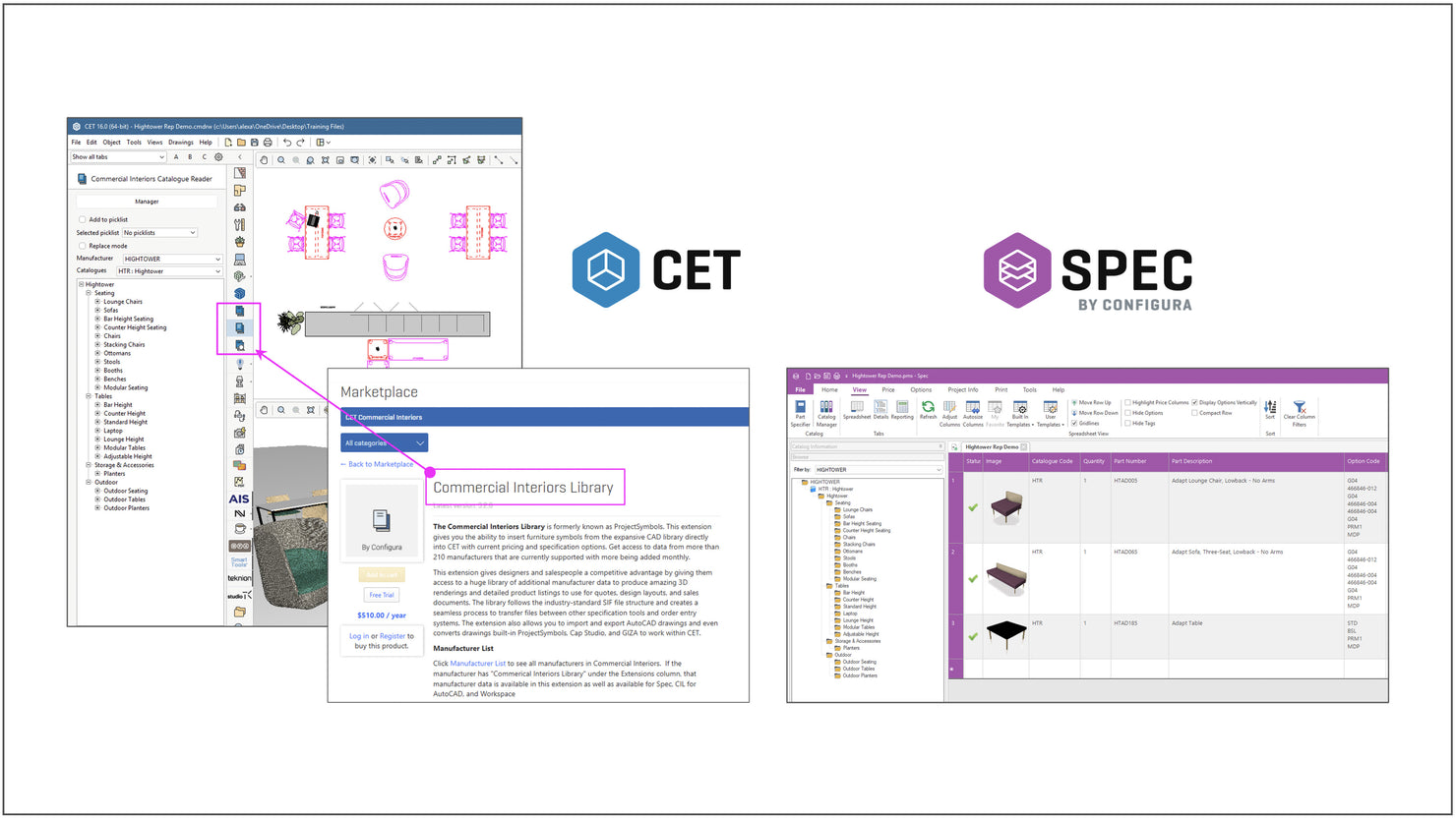 Hightower’s product collection is now available in CET through the Commercial Interiors Library and Spec, giving you everything you need to bring our products into your projects fast. From finishes and pricing to render-ready images, CET makes it easier than ever to design, visualize, and specify Hightower. Watch the video below to learn how to install the Hightower CIL Catalog.