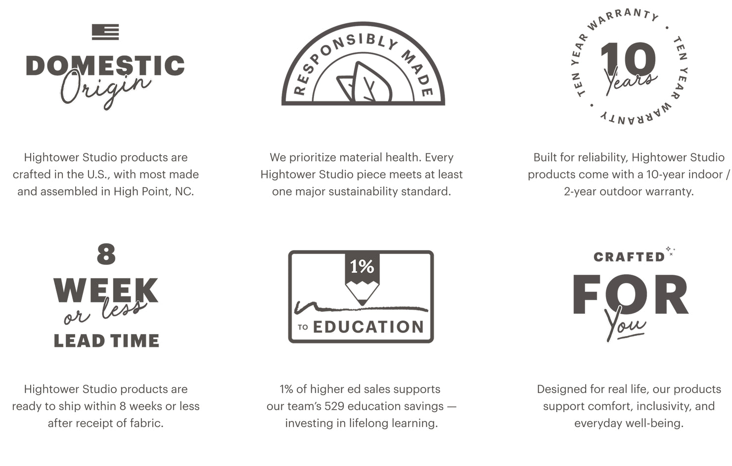 Hightower Studio fits into our house of brands as a playful, younger sibling. Smart but always learning, polished but never too serious, simple with unexpected details intended to surprise and delight. Take a closer look at the products and you’ll see there’s even more to celebrate. Along with a focus on comfort and functionality, we also believe considered design should be expressive, which is why we offer a curated palette of materials and finishes, crafted to bring your vision to life with ease.