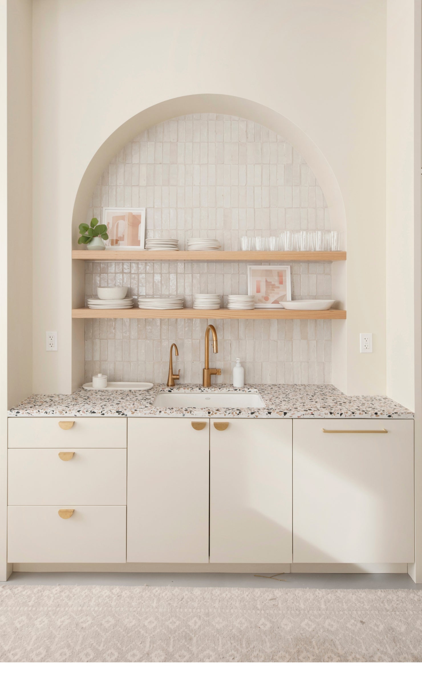 A light and airy aesthetic paired with intentional details, such as the terrazzo countertop from Concrete Collaborative, gave the design a calming vibe while still feeling contemporary and livable.