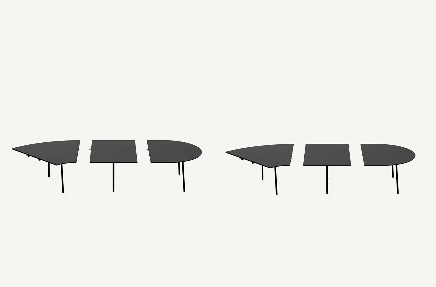 The award-winning Nest System Tables bring people together through a modular, highly adaptable design that fosters connection and productivity. The system features three modules, two heights, and two widths — offering endless configurations that can grow, shrink, or turn to fit any space. A playful alternative to the traditional straight table, Nest System Tables create dynamic gathering points where people and ideas naturally come together.