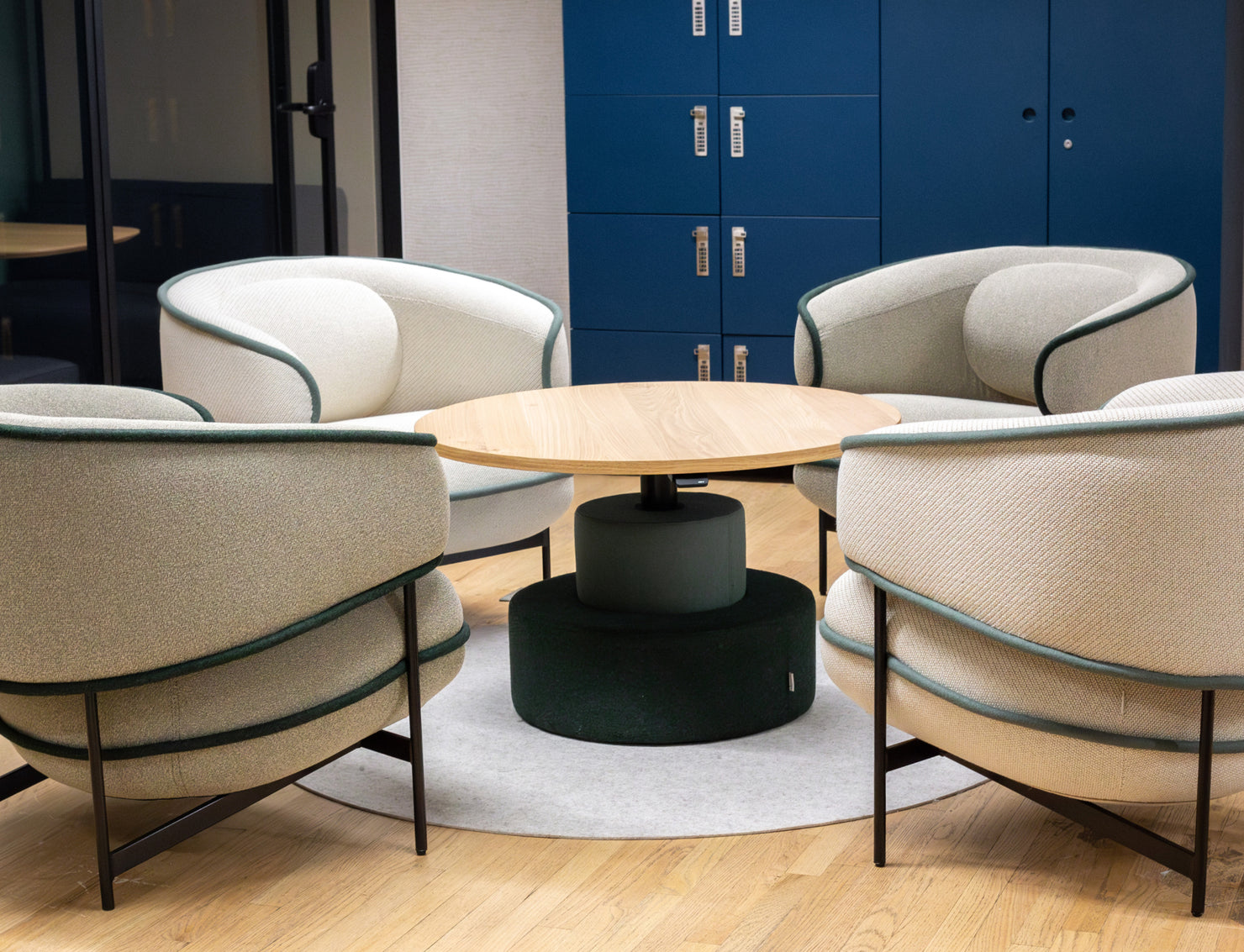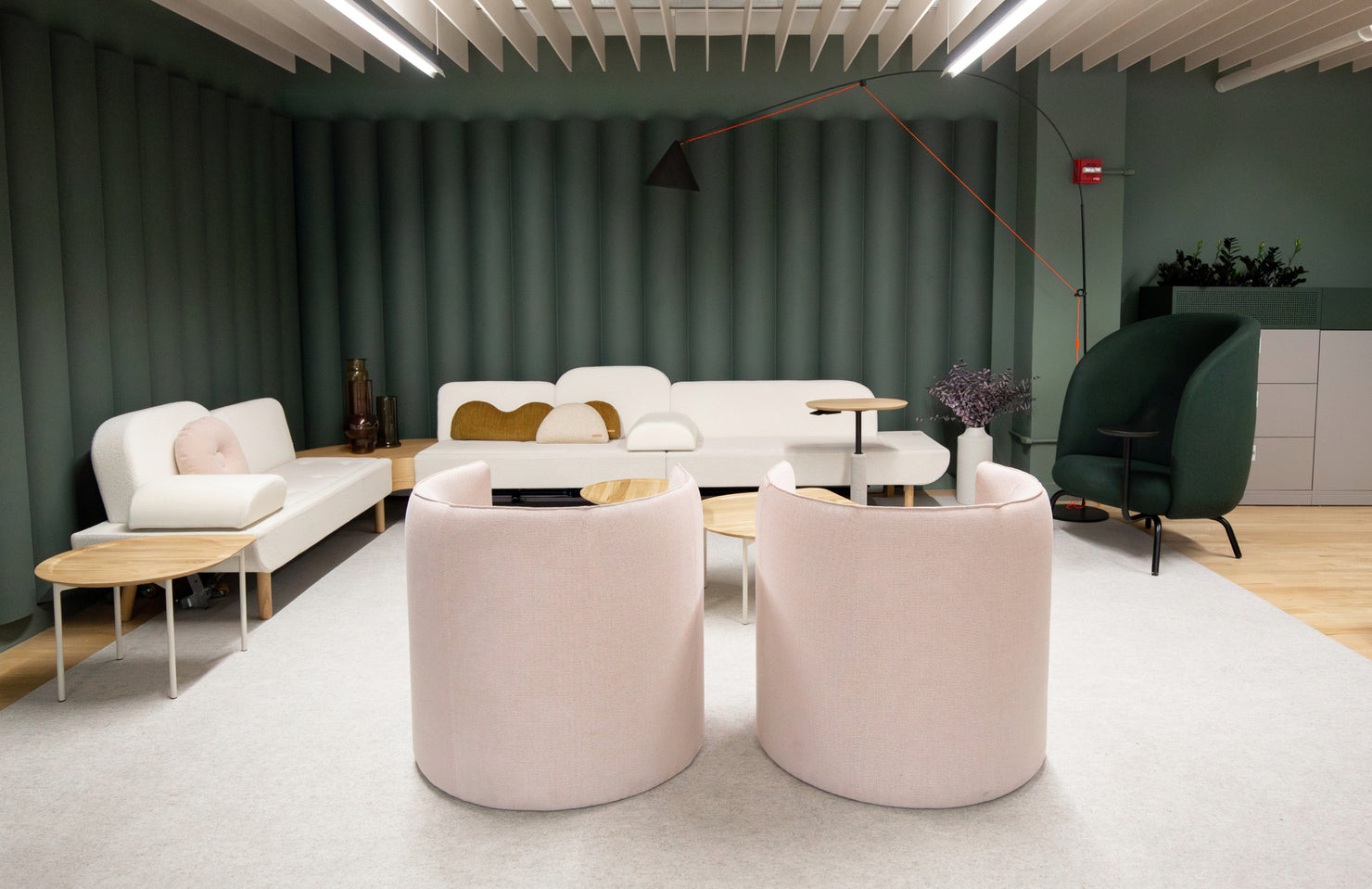This approach creates moments of discovery. Textures, colors, and forms that speak across collections. A modular sofa from Hightower nestled next to acoustic wall panels from Unika Vaev and organization solutions from Heartwork. A Clarus writable surface integrated into a meeting room designed with Camira fabrics. Framery pods offer pockets of quiet among open-plan layouts. It’s a curated collision of function and form, designed not just to show products, but to show how they might actually live and work together in the real world.