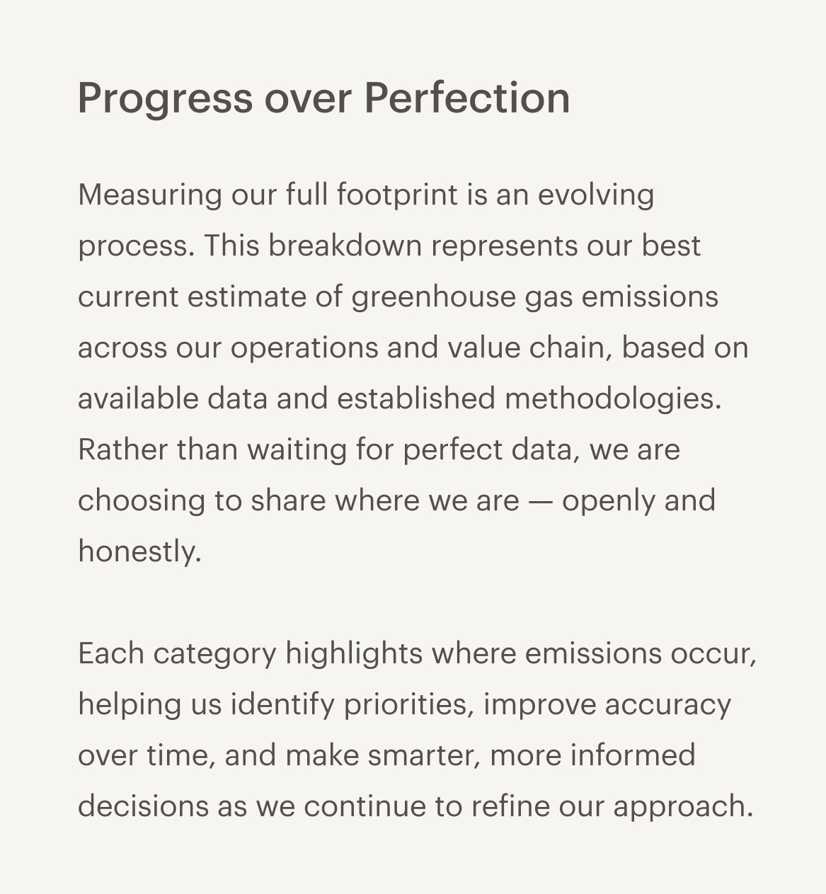 Our results show that most emissions come from purchased materials, particularly metals, wood, and plastics. Through our Considered Solutions framework, we prioritize verified, lower-impact materials, work closely with responsible suppliers, and design products with Climate Health, Human Health, and Social Equity in mind. A key next step is investing in third-party verified Environmental Product Declarations (EPDs) to strengthen data quality and supply chain transparency