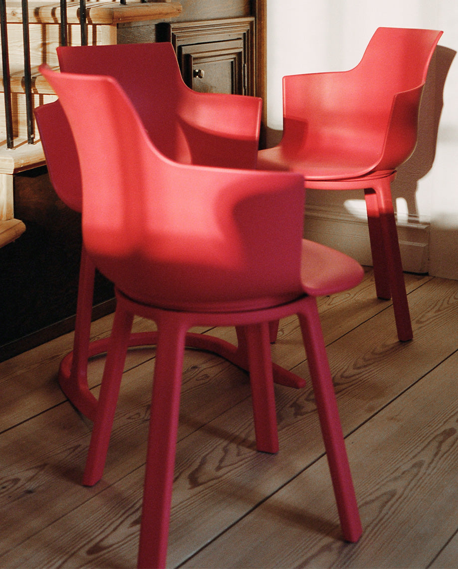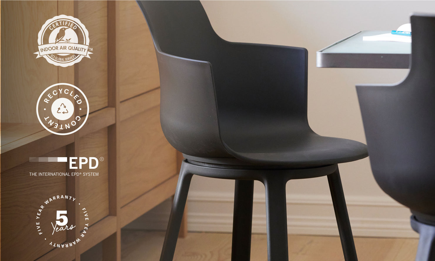 Sustainability is central to the Social® Collection, from material choice to end-of-life design. Both Tilt and Turn are crafted from post-consumer recycled polypropylene reinforced with glass fiber, balancing durability with reduced impact. A hollow base produced through air-infused injection molding minimizes material use while maintaining stability. Designed for disassembly, each chair can be fully recycled, extending its lifecycle responsibly. Social® offers contract spaces seating that’s as thoughtful as it is functional.