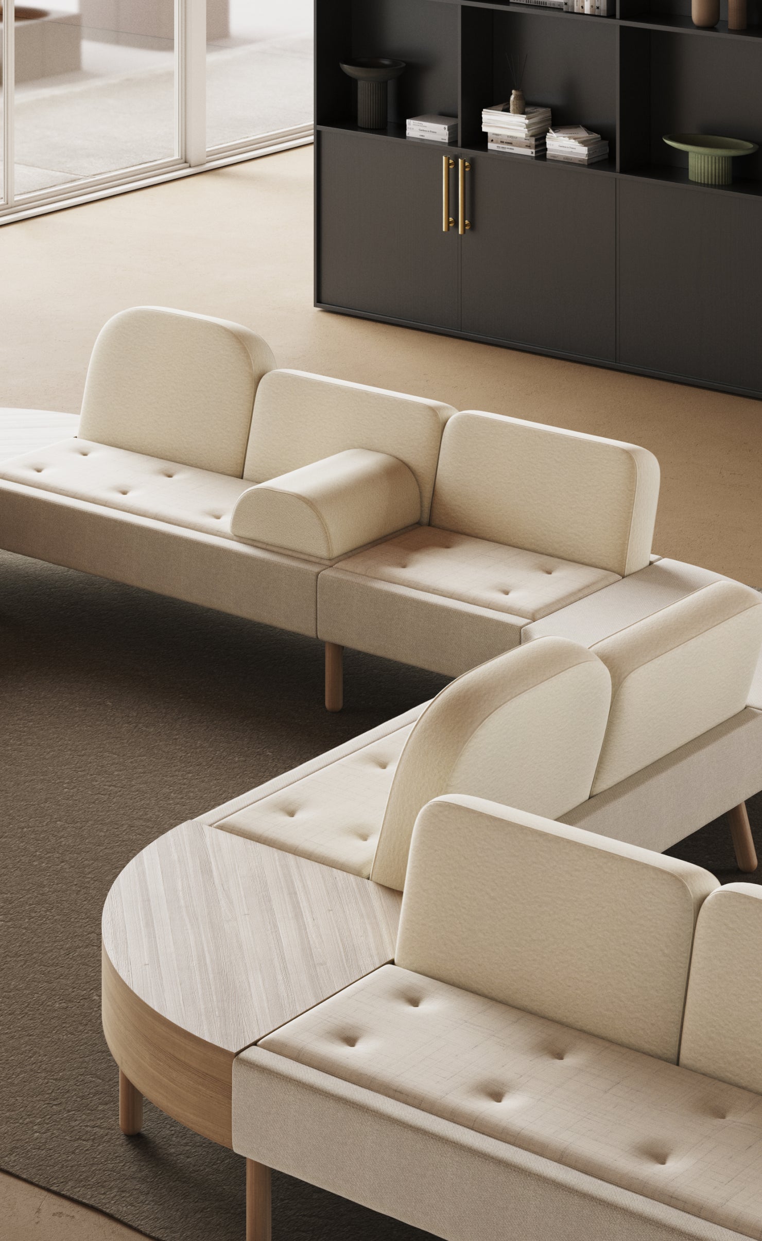 Whether you’re looking for a sofa or a full modular solution, Toward is for you. Our extensive modular system gives you the flexibility to build the shape your space needs and the expansive functionality of Toward allows the user to utilize every aspect of it to their advantage. The movable armrests allow the user to either create personal space, collaborate with the person next to them or even create a personal lap desk when you flip them over. Every detail of Toward has been designed to perfection.
