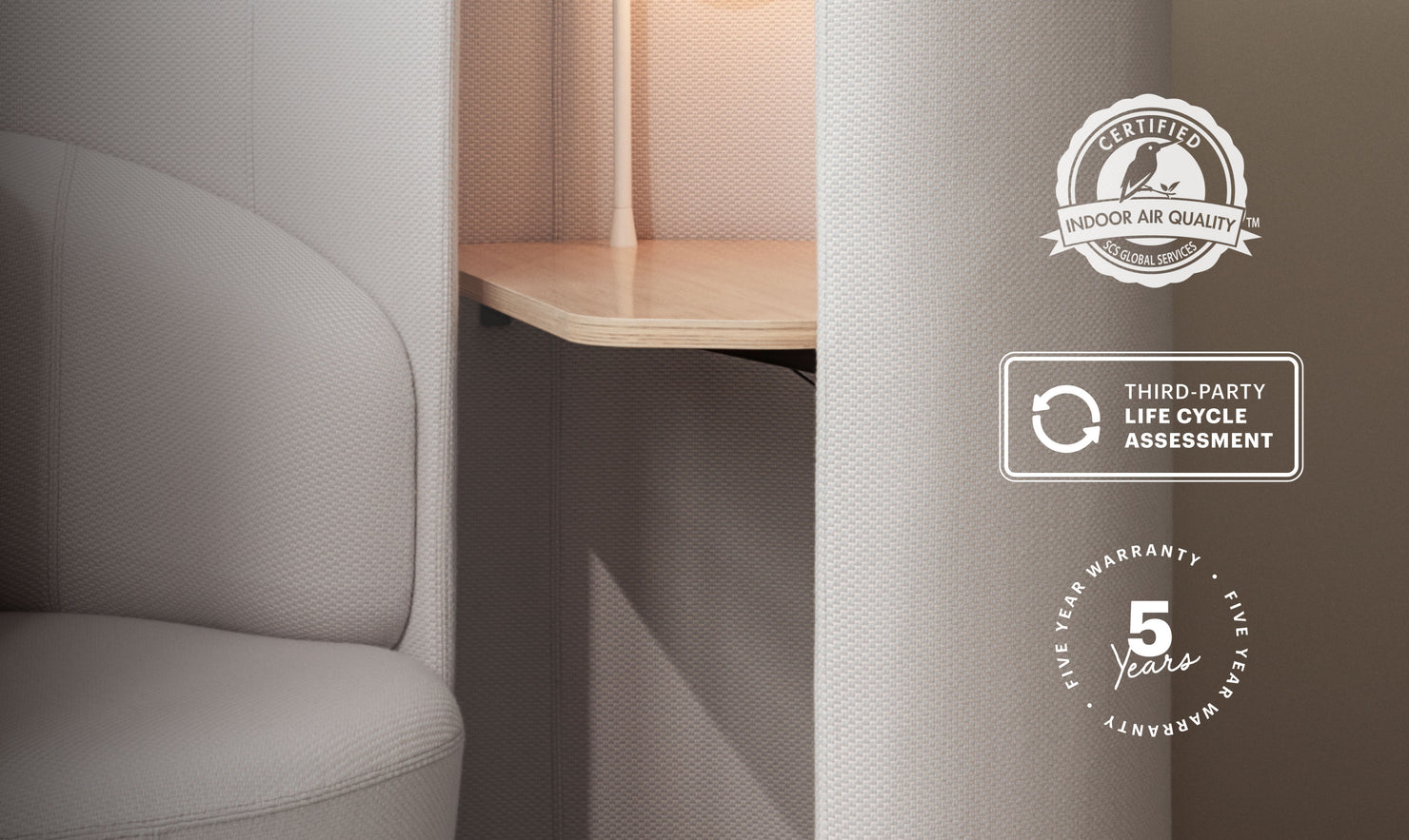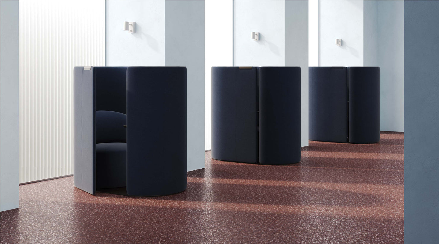 Tulipan’s modest scale makes it effortlessly adaptable across environments. Standing just over four feet tall with a footprint no larger than a small table, it defines privacy without enclosing it — offering a quiet, comfortable retreat that integrates seamlessly into open, active spaces.