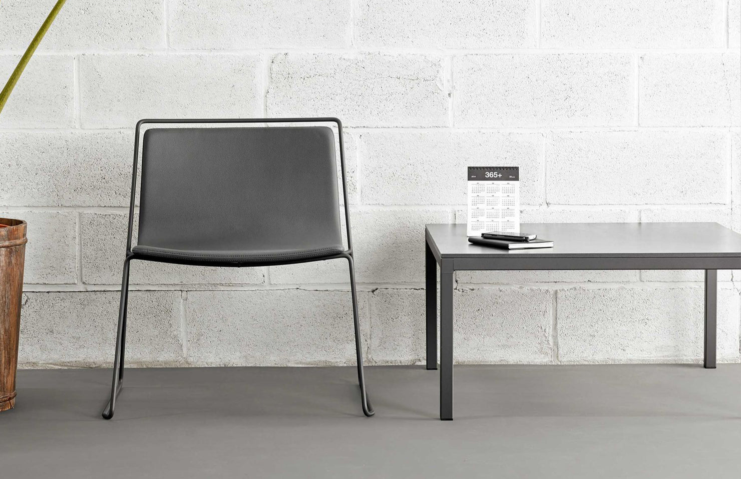 A classic and simple chair that is finely crafted and a perfect fit for a variety of commercial applications. The epoxy-coated steel sled base is available in nine colors with a fully upholstered seat.
