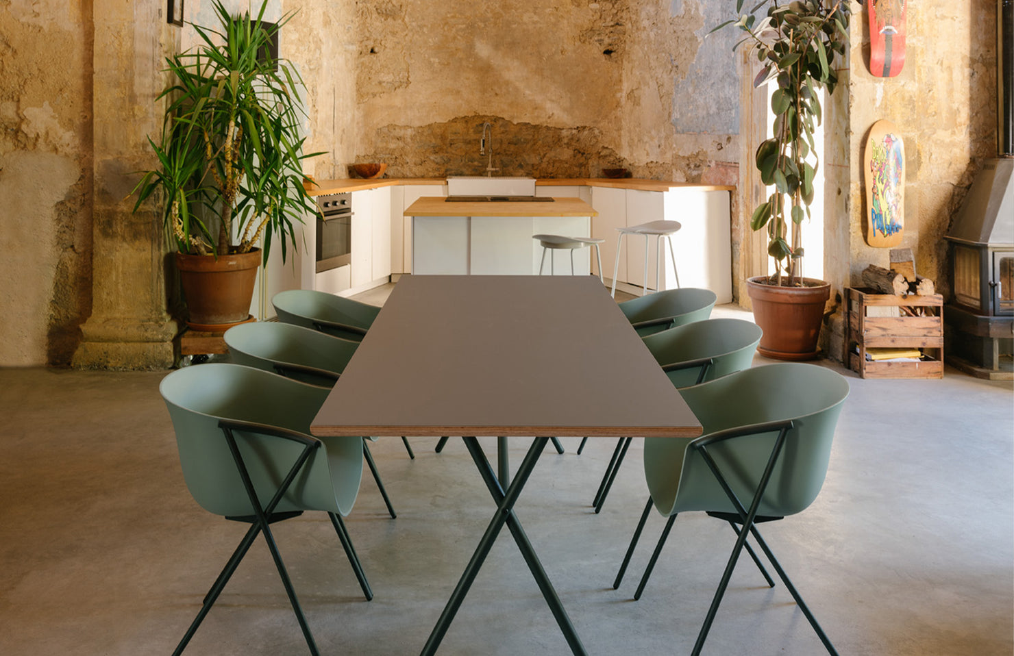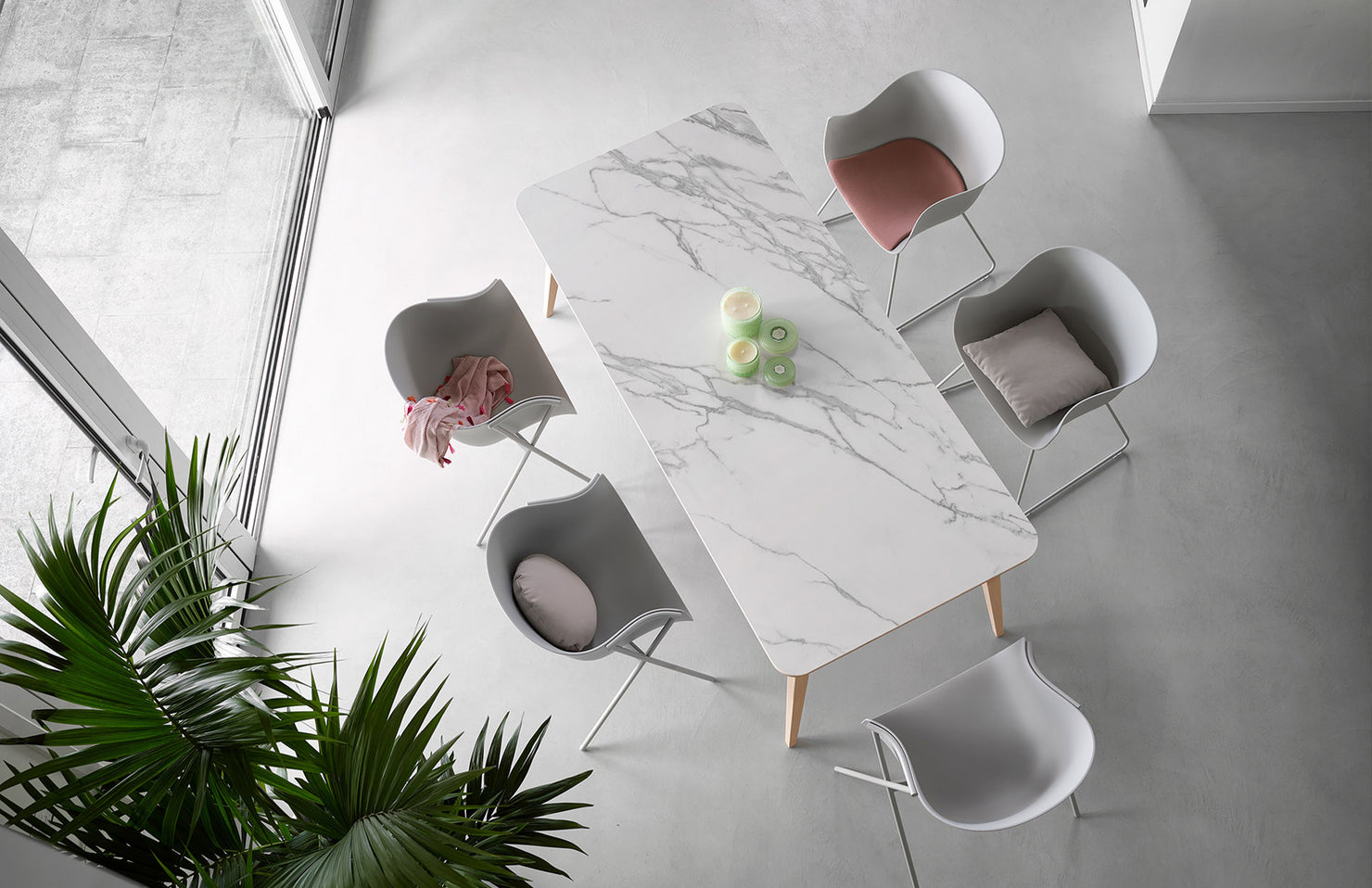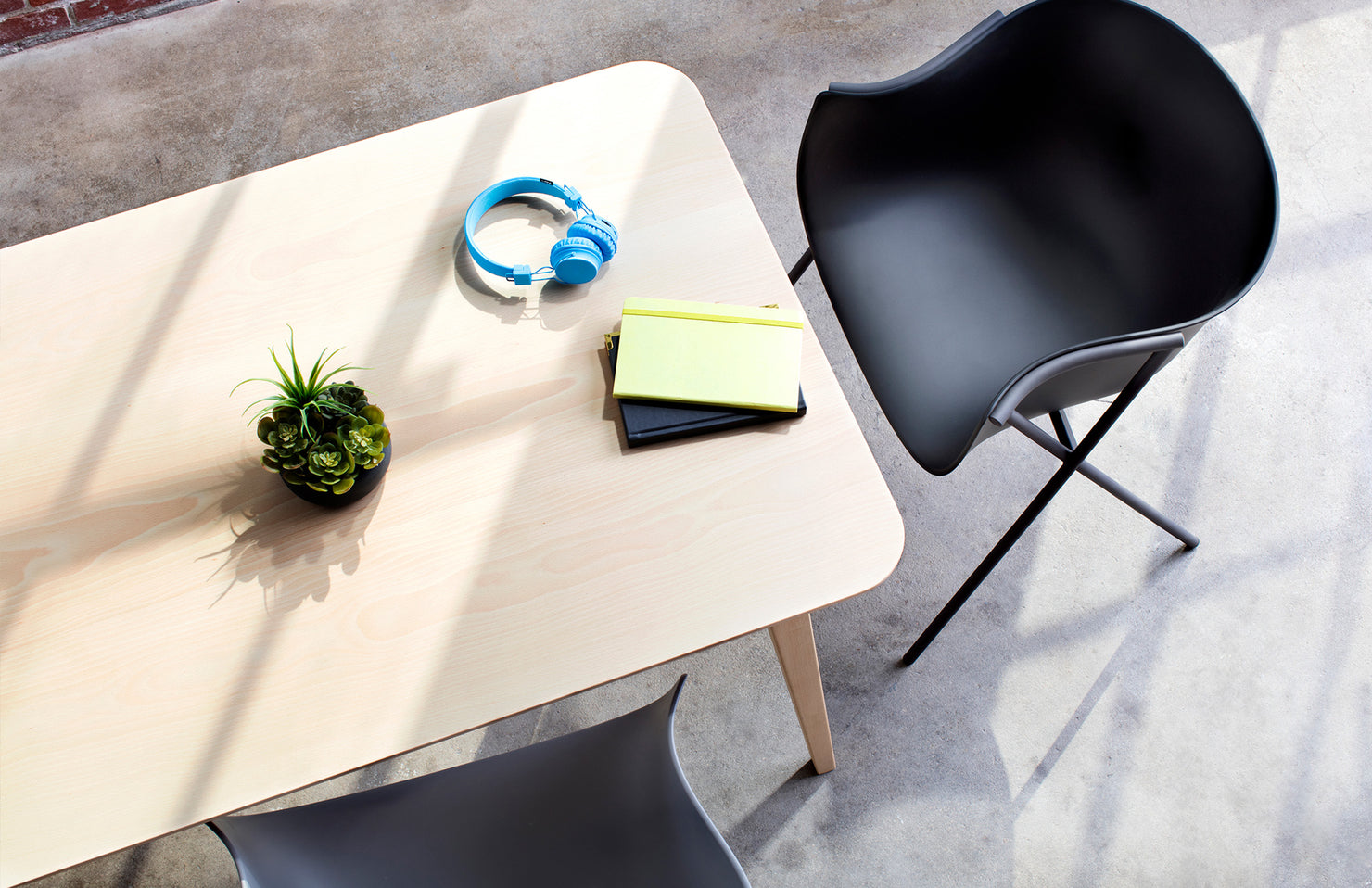 The convex and concave curves of Bai's seat provide high style and comfort, while the rounded edges and curved back provide an ideal resting spot for arms.