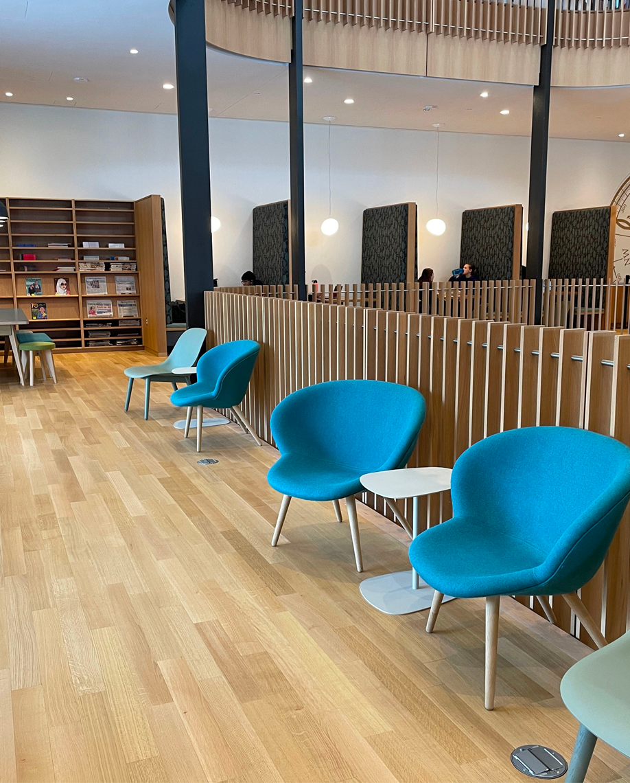 The Capri Lounge's wood base adds a warm, contemporary feel to the chair and makes it suitable for a wide array of public spaces.
