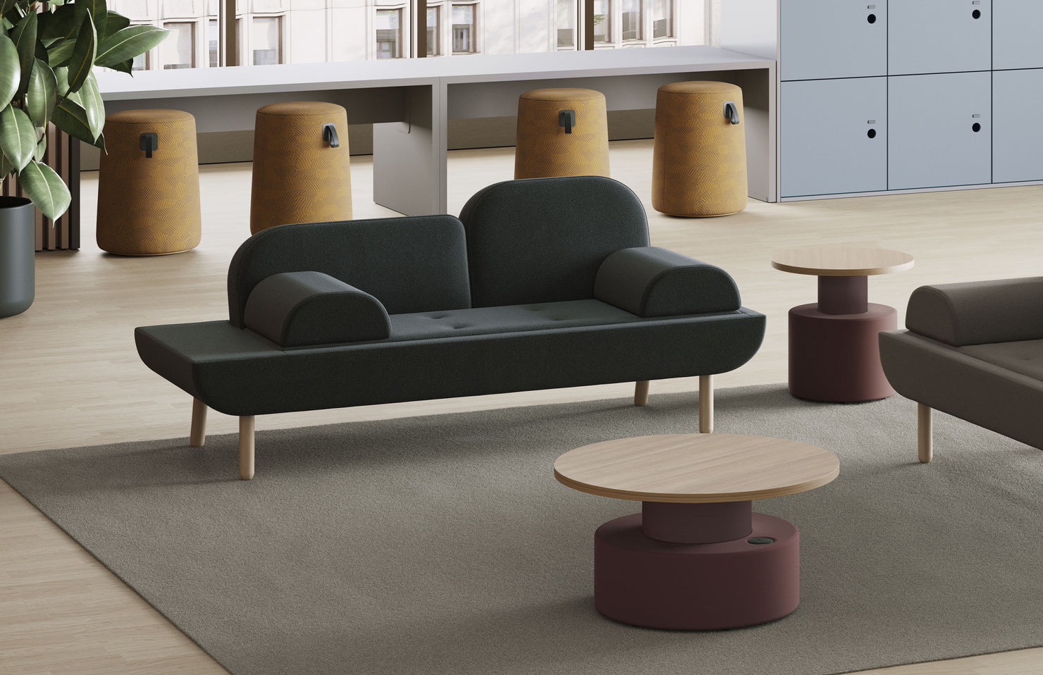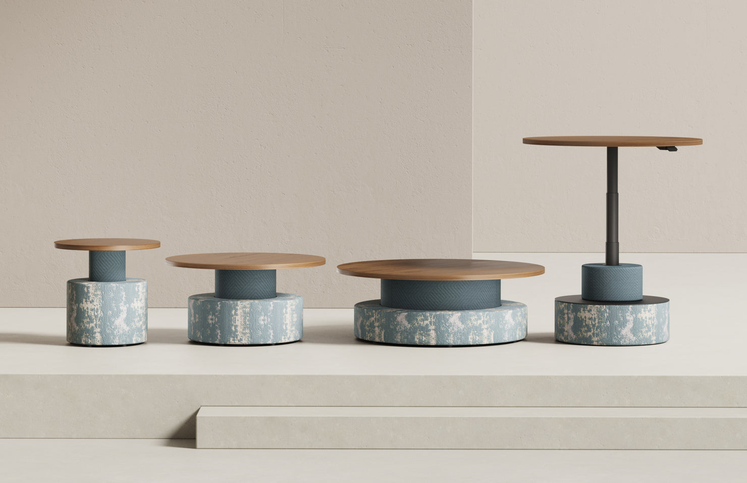 A striking and sturdy occasional table with a fully upholstered 2-tiered drum base and a multitude of tabletop finish options. Nest multiple sizes together for a fun and functional combination.