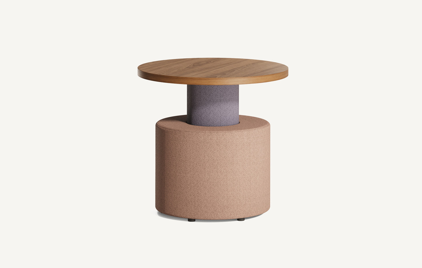 A striking and sturdy side table with a fully upholstered 2-tiered drum base and a multitude of tabletop finish options. Nest multiple sizes together for a fun and functional combination.