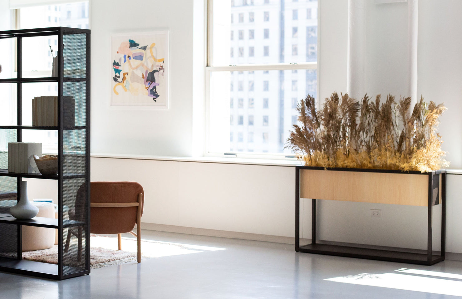 Bring the outside in with the Dry Planter Box and shelving unit. Available in 2 sizes.