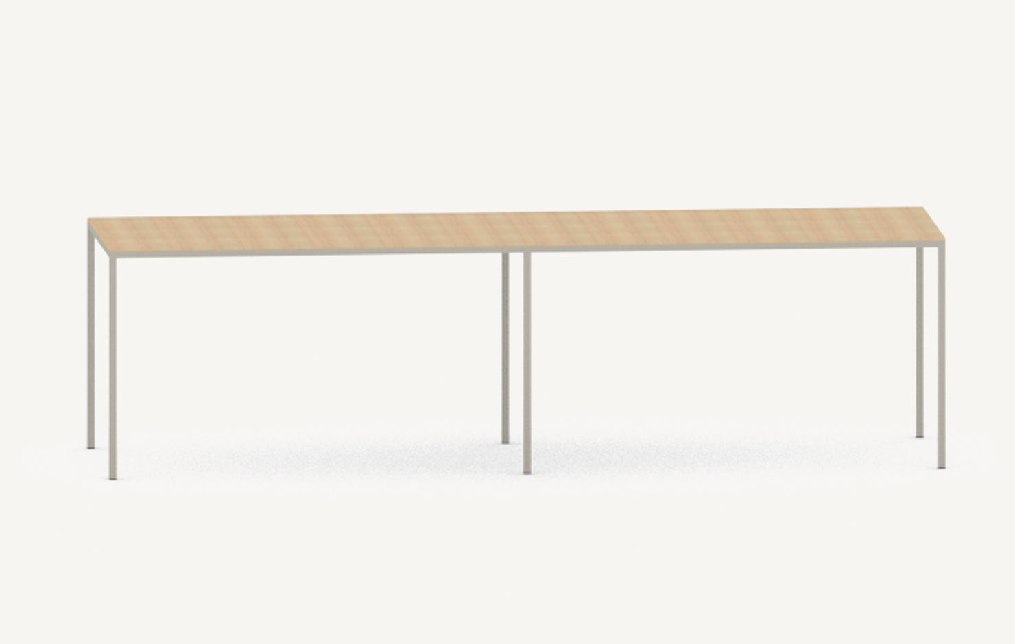 A minimal and sophisticated table design with numerous customization and sizing options, allowing for a cohesive design throughout a space.