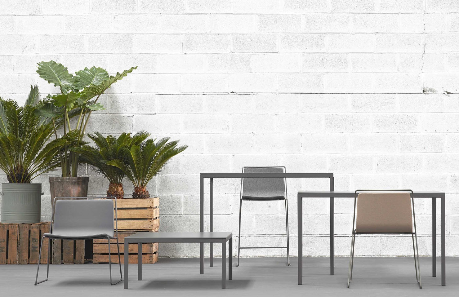 A minimal and sophisticated table design with numerous customization and sizing options, allowing for a cohesive design throughout a space.