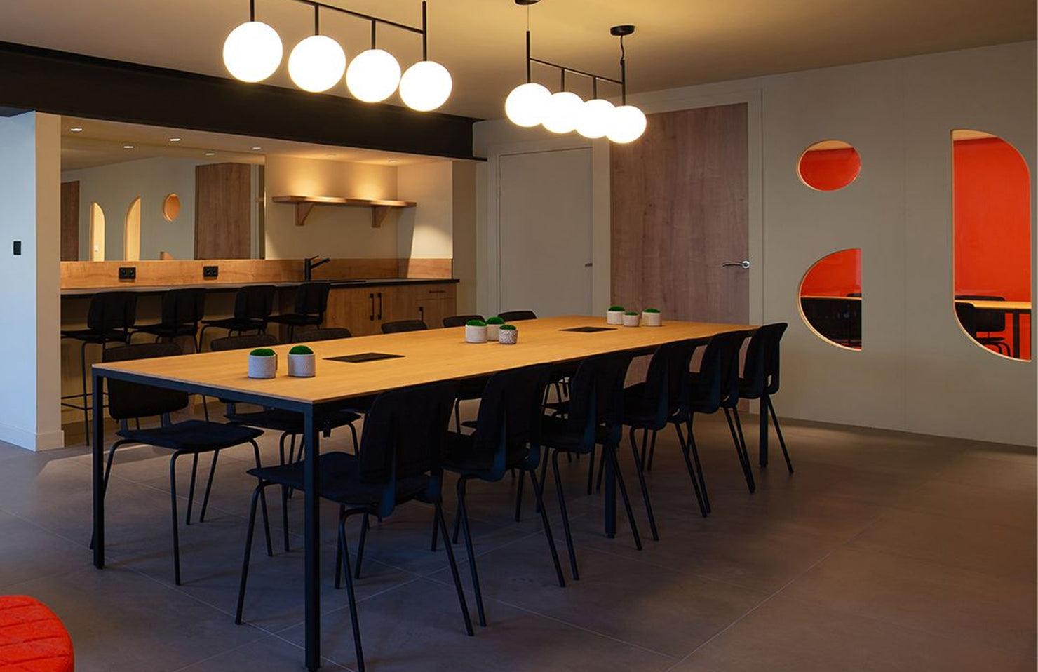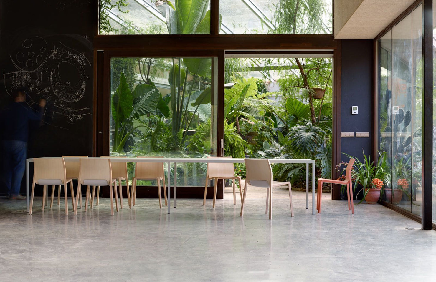 A minimal and sophisticated table design with numerous customization and sizing options, allowing for a cohesive design throughout a space.