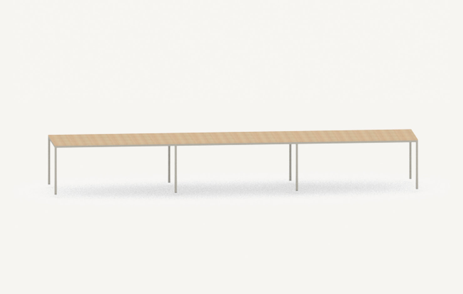 A minimal and sophisticated table design with numerous customization and sizing options, allowing for a cohesive design throughout a space.
