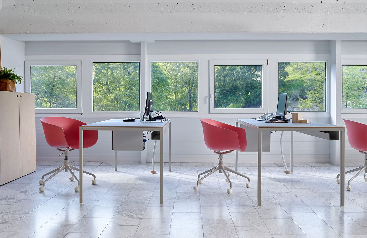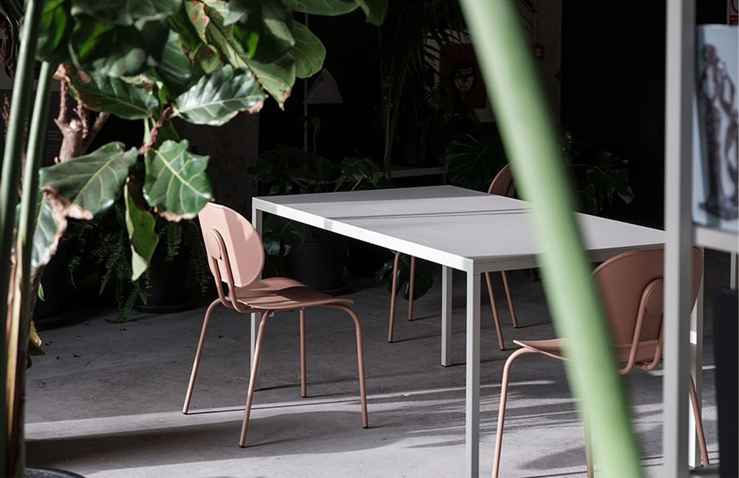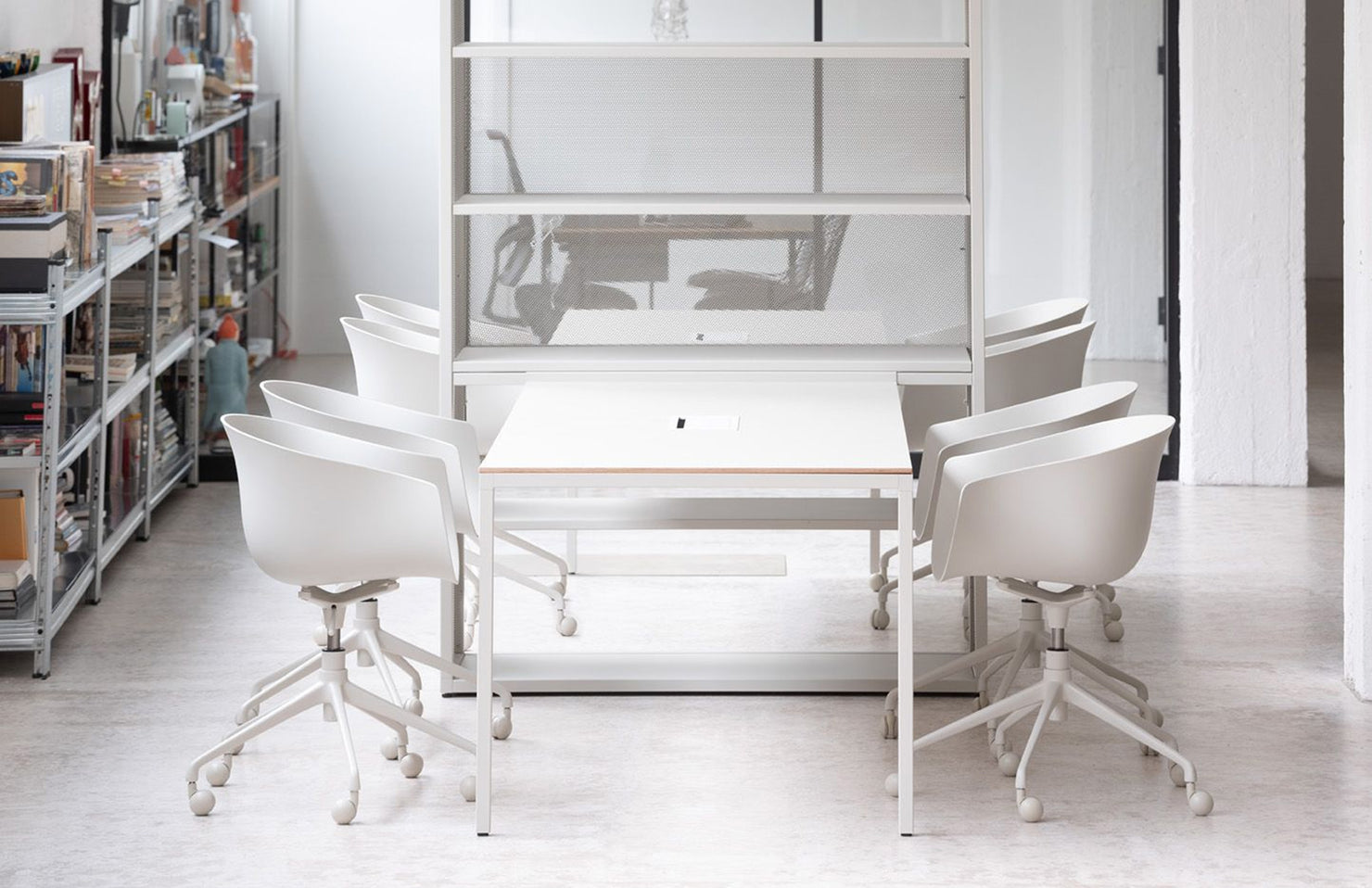 A minimal and sophisticated table design with numerous customization and sizing options, allowing for a cohesive design throughout a space.