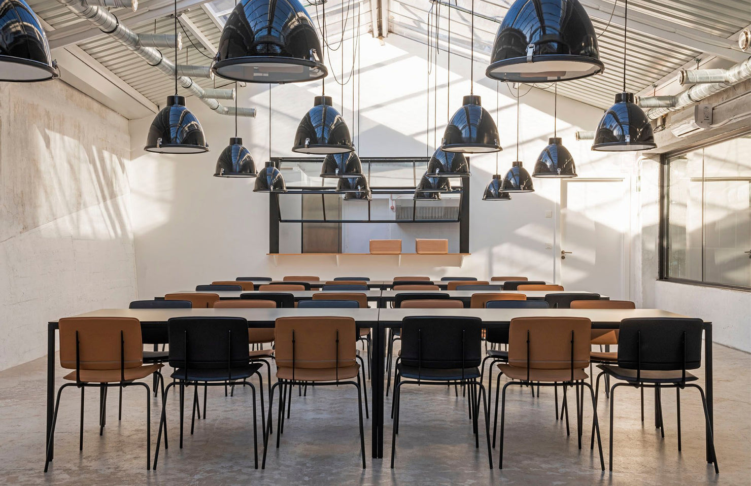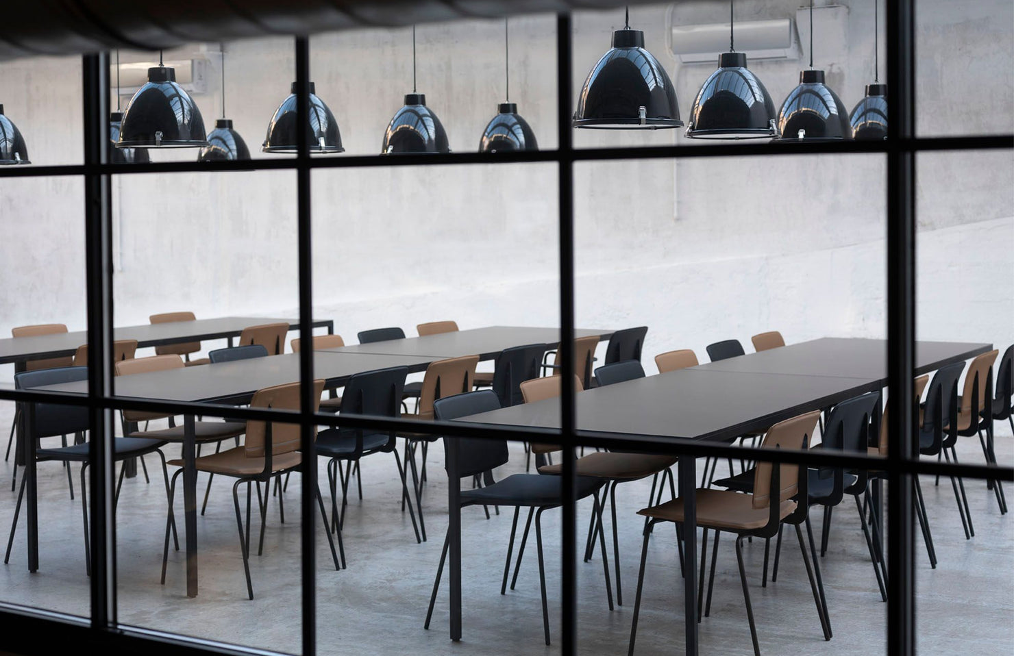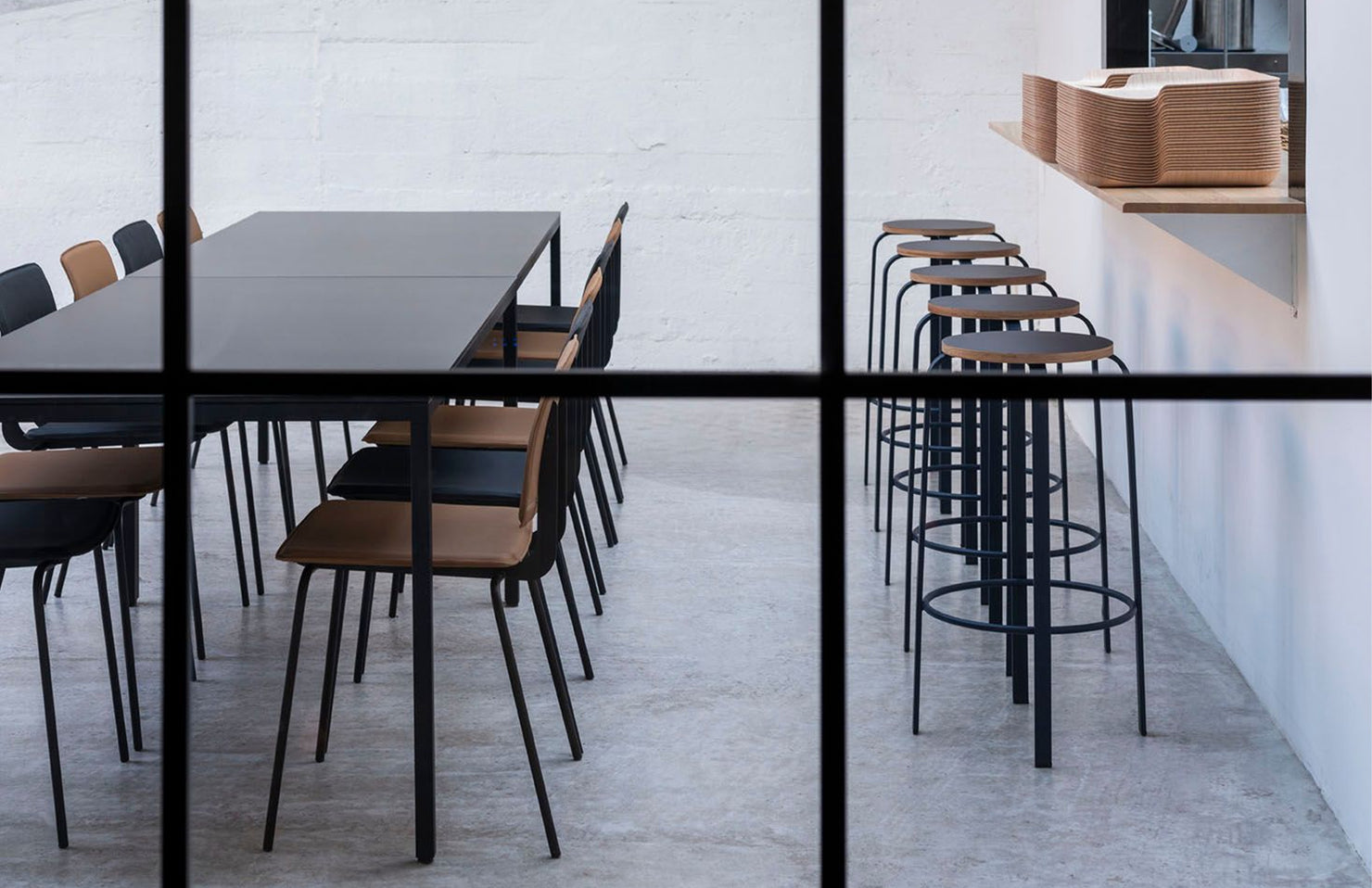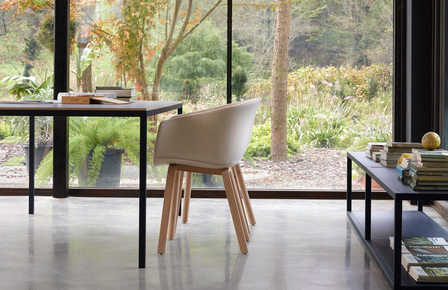 A minimal and sophisticated table design with numerous customization and sizing options, allowing for a cohesive design throughout a space.