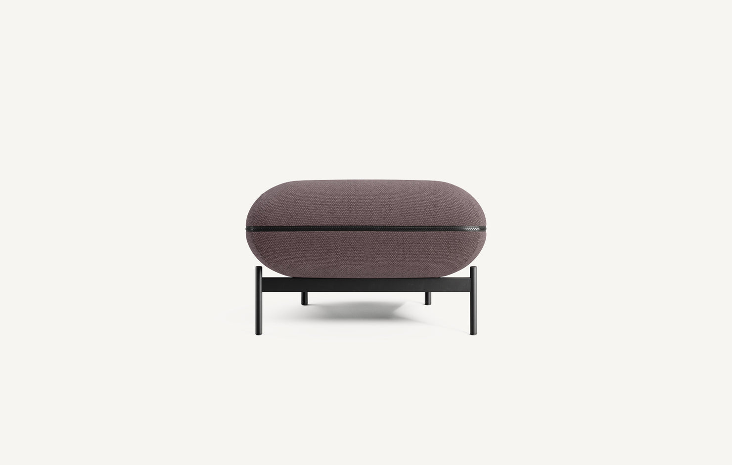 Flote Ottoman is the perfect companion to the Flote Lounge and Sofa with its subtly angled design, forming effortlessly to a user's natural seated position. Featured here with a chunky zipper design.