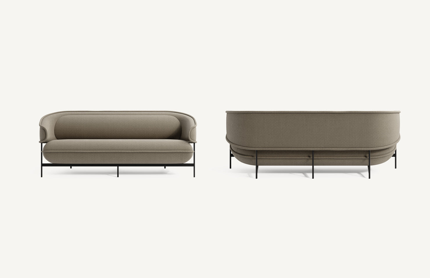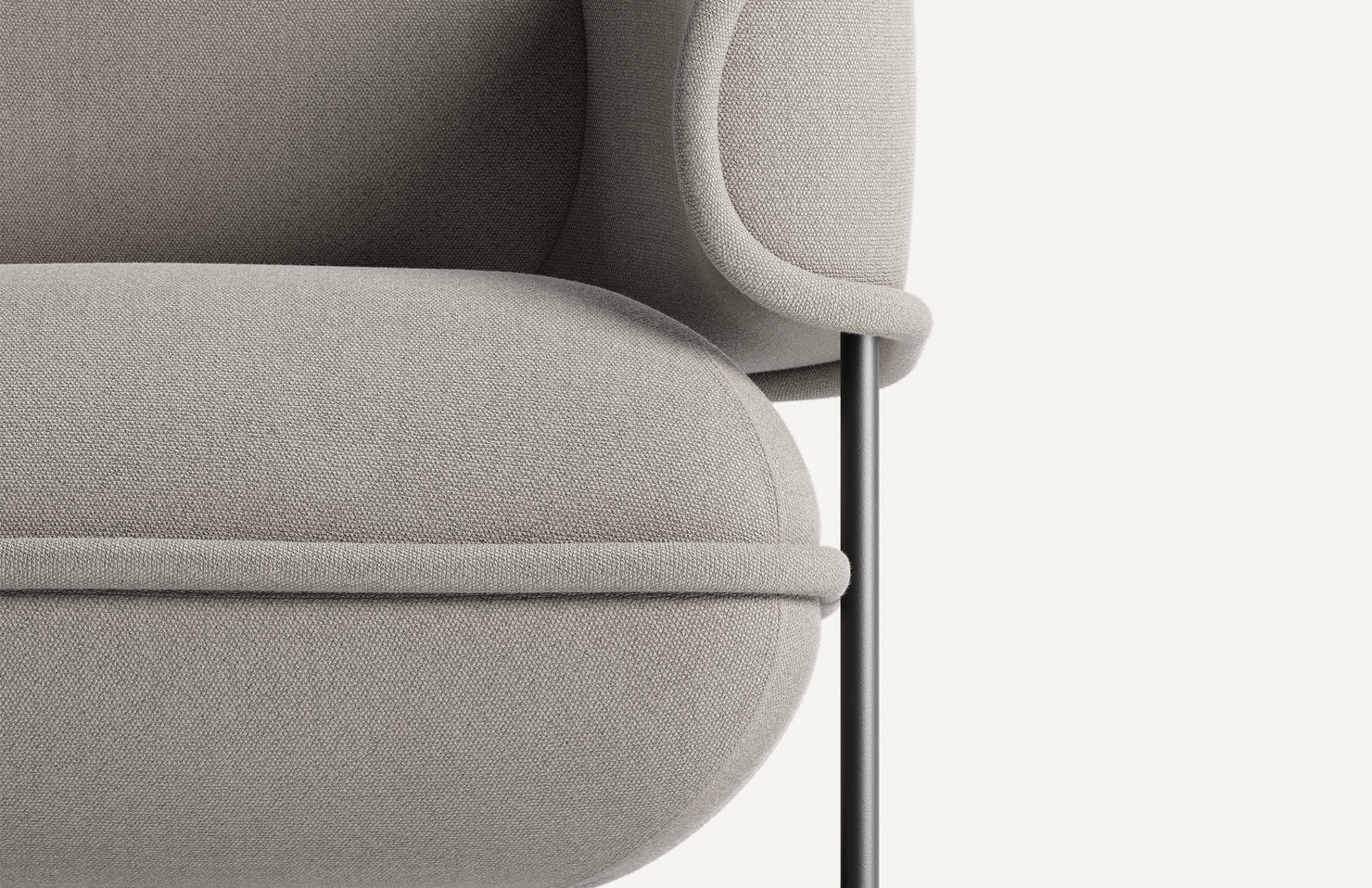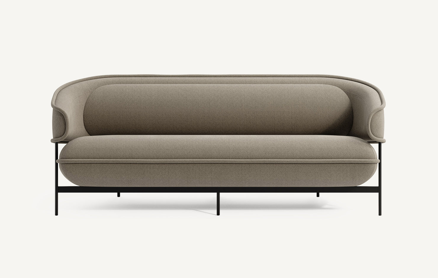With a generous seat and enough room for 3 adults, Flote Sofa brings comfort and high design to group settings. Featured here with a matching welt.