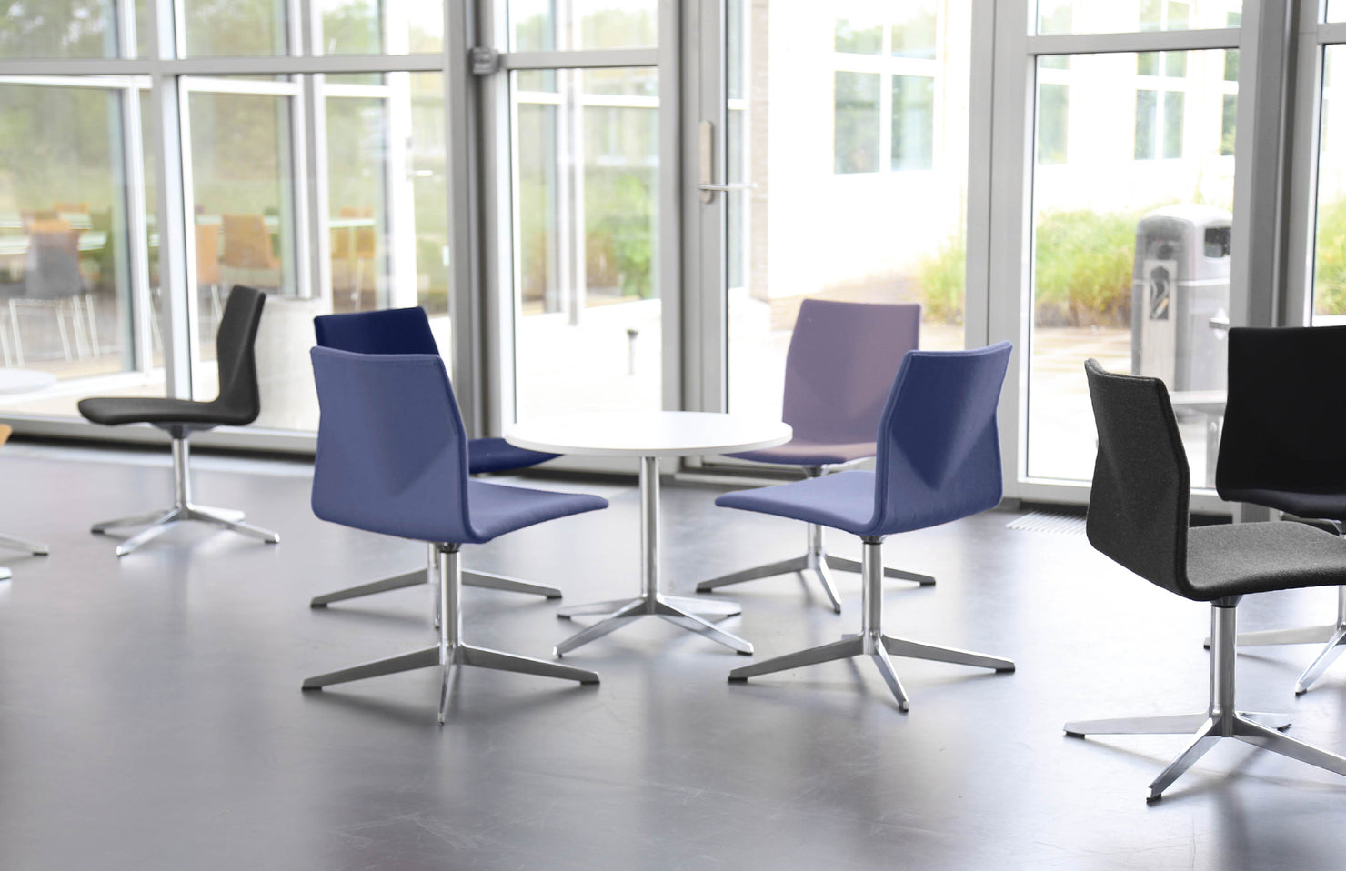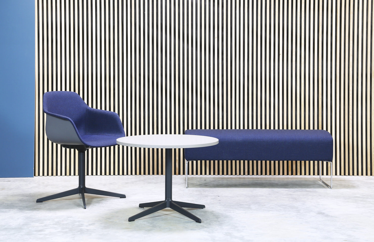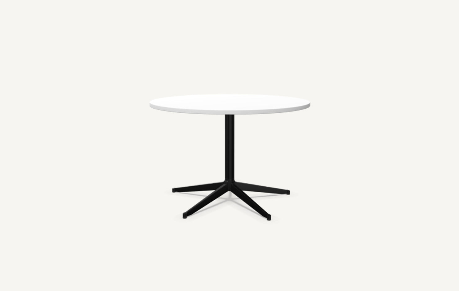 A functional pedestal table with a clean, modern design aesthetic and clever details.
