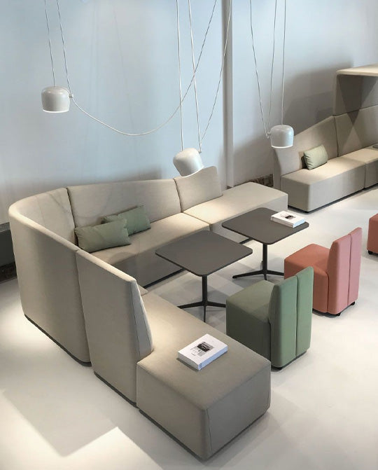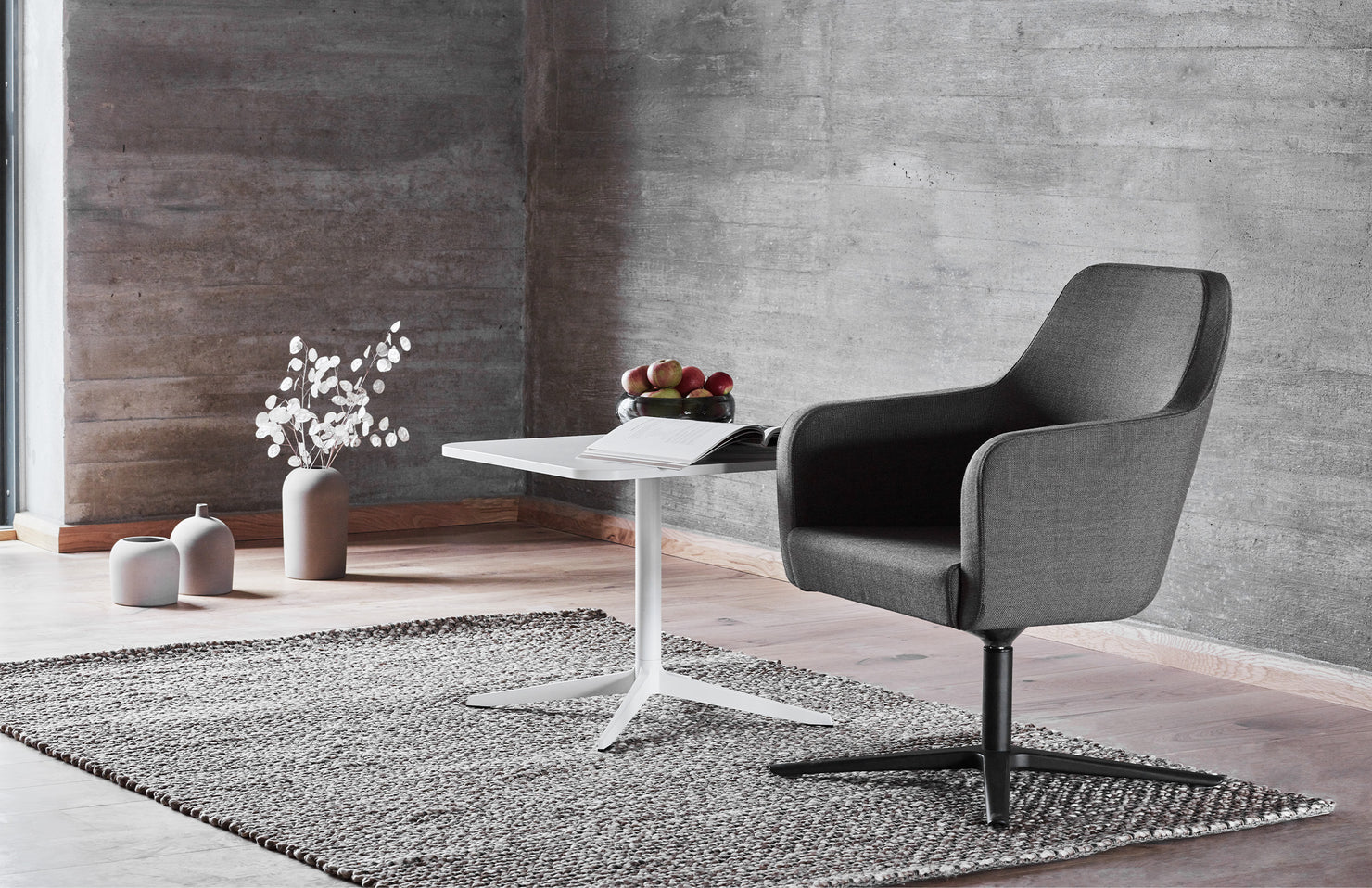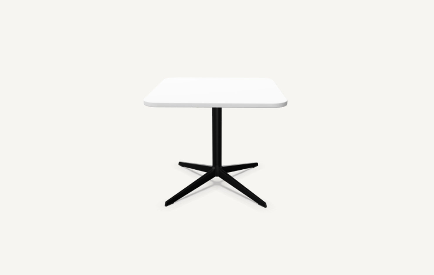 A functional pedestal table with a clean, modern design aesthetic and clever details.