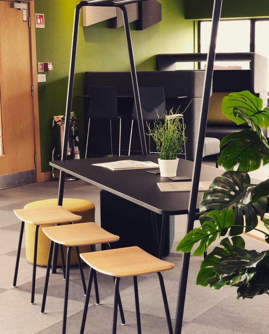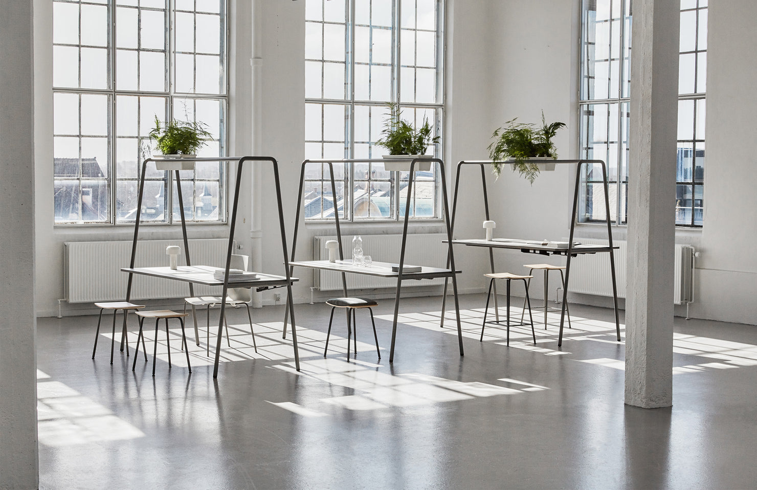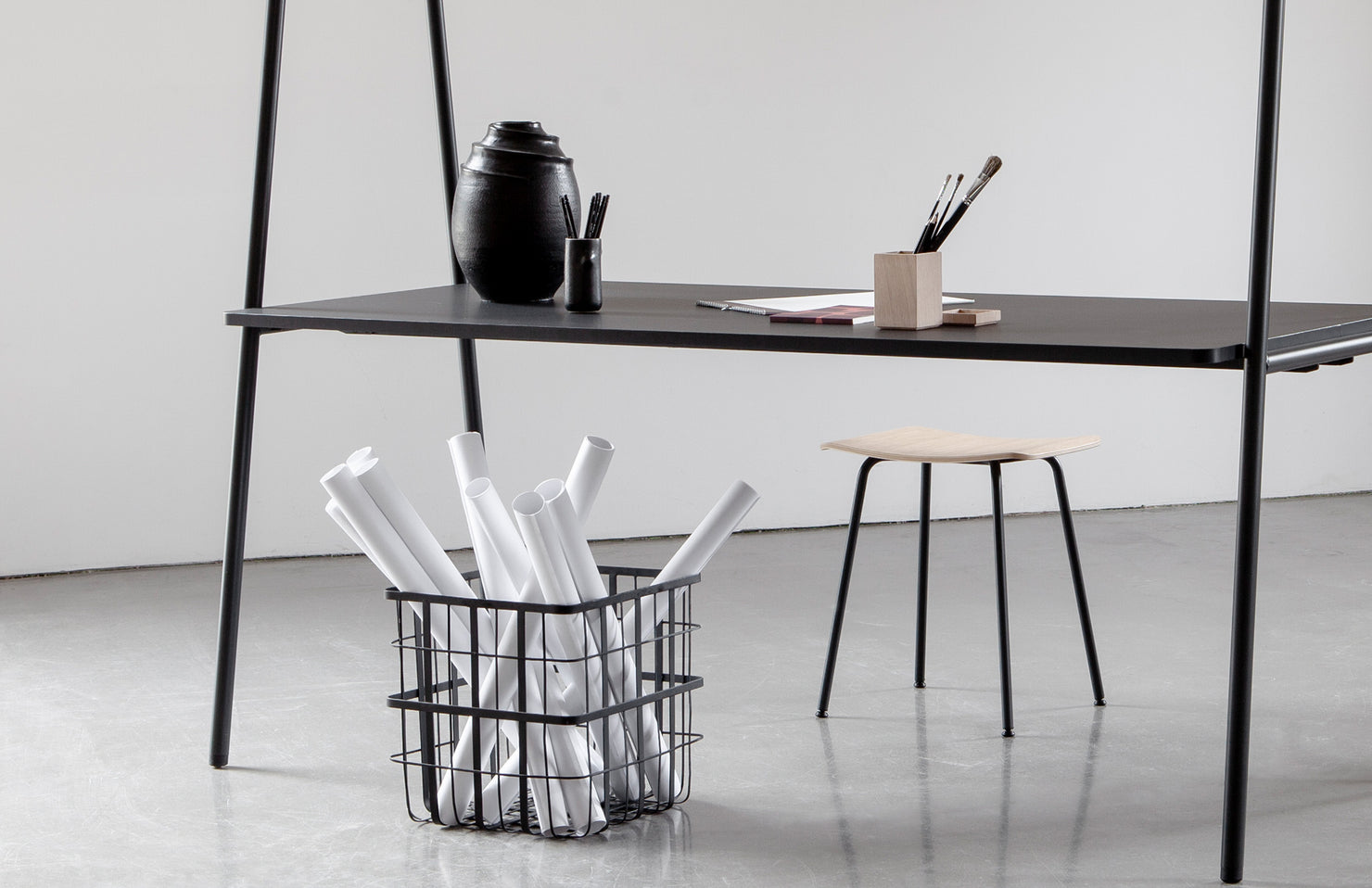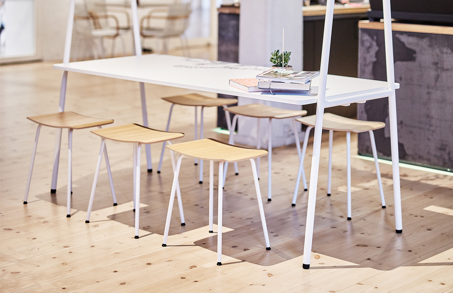 Designed with bent oak seats and tubular steel frames, Four Stool is the perfect minimal companion to Four Design Tables.