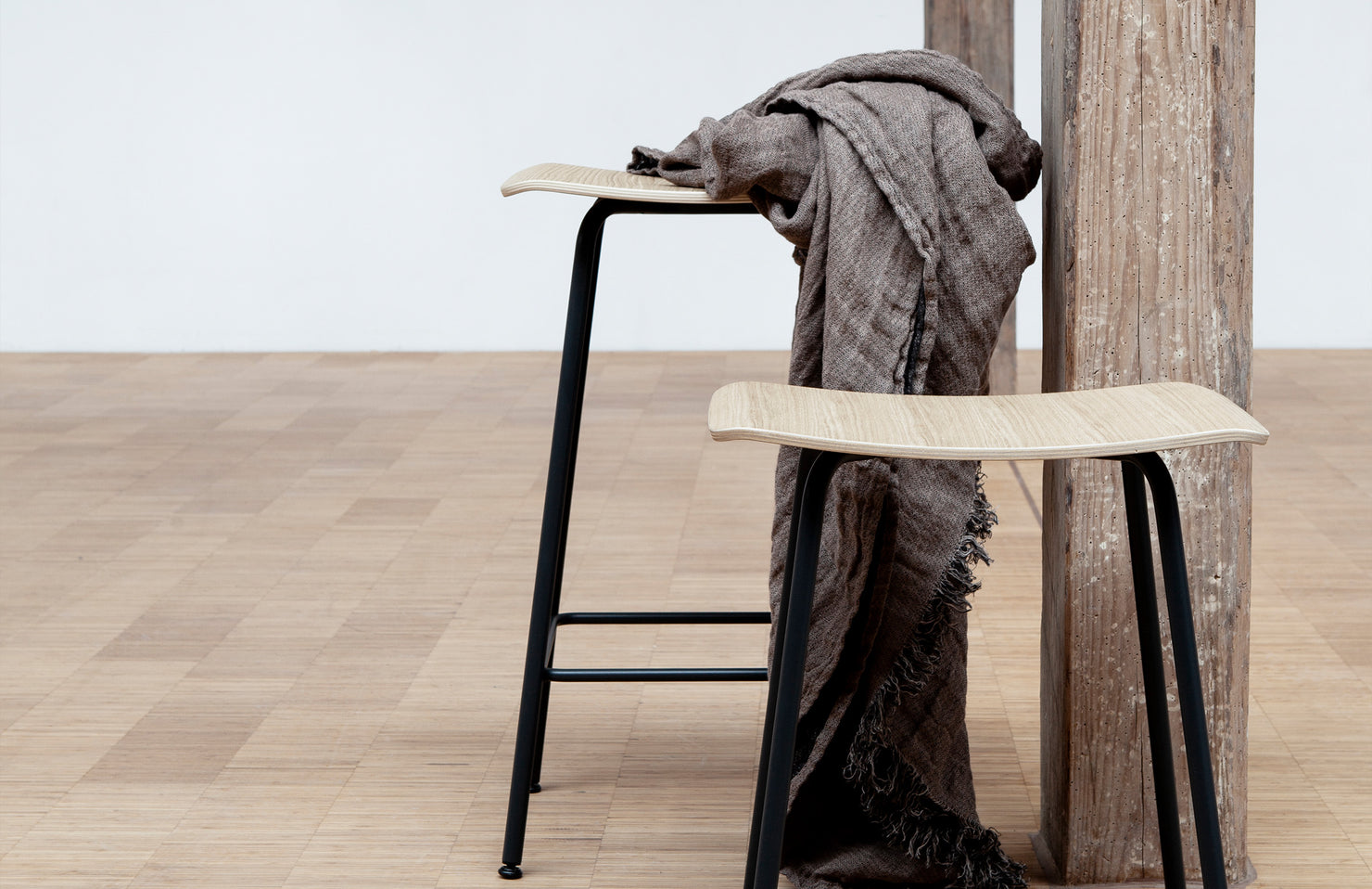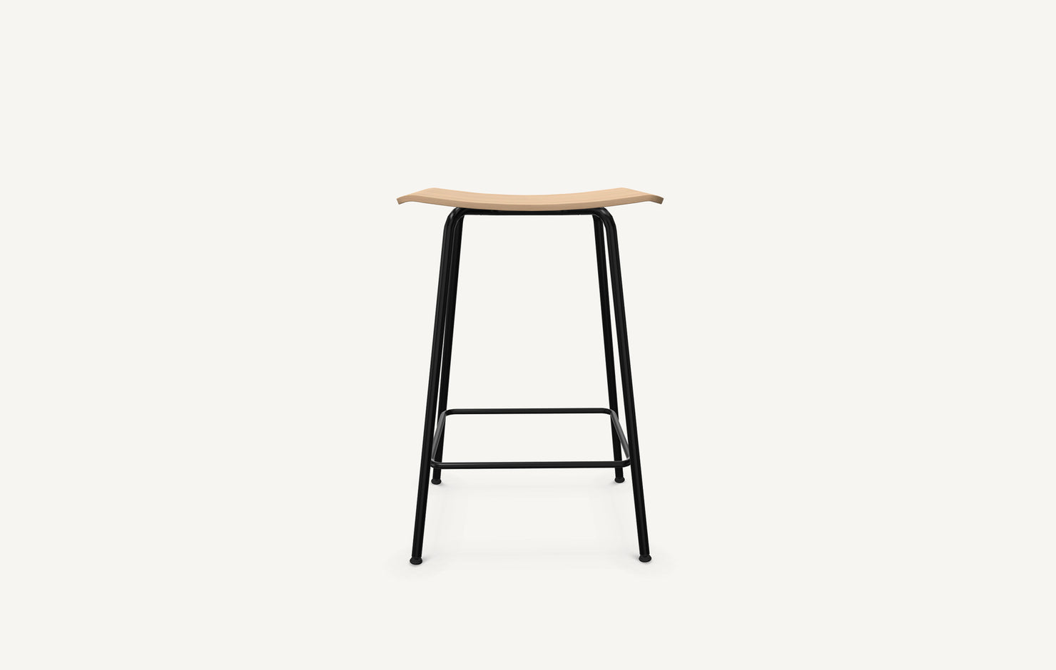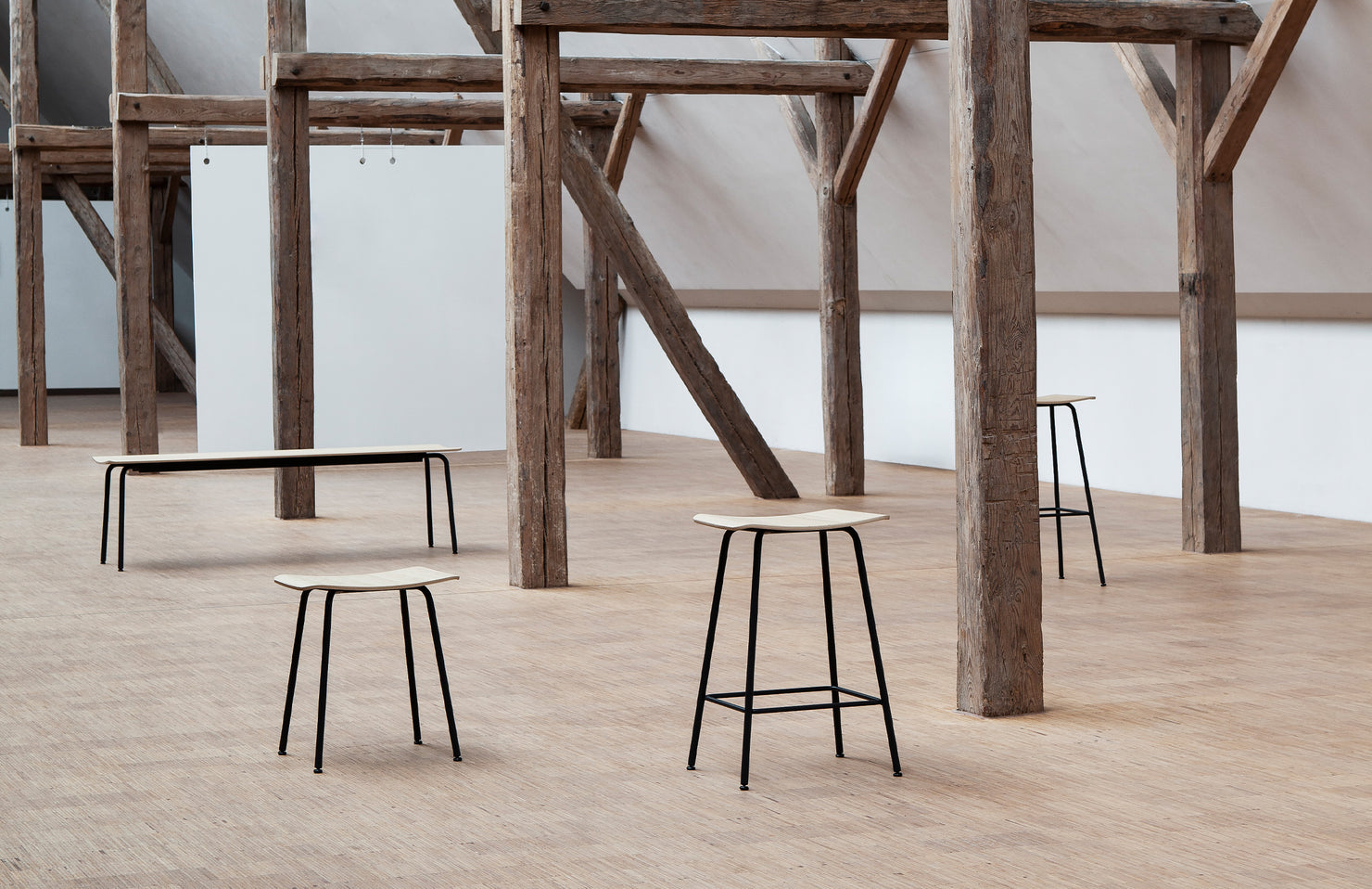 Designed with bent oak seats and tubular steel frames, Four Stool is the perfect minimal companion to Four Design Tables.