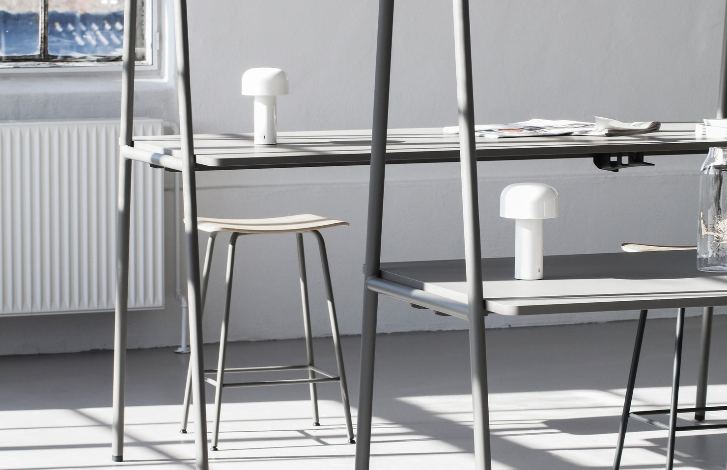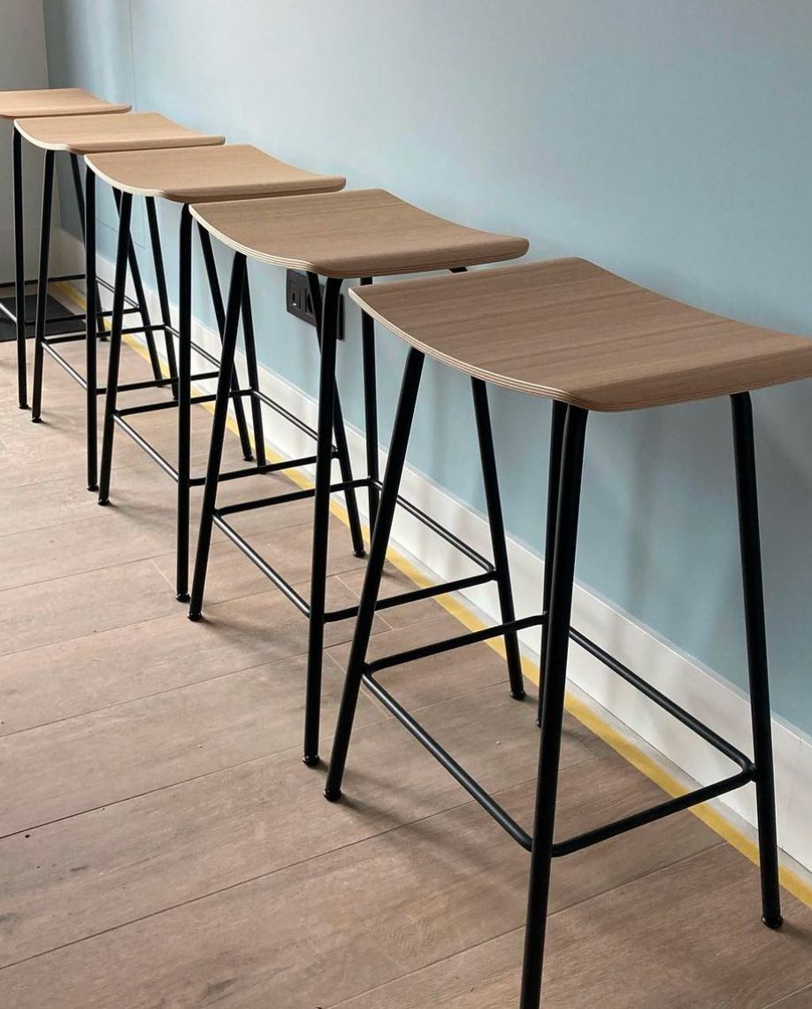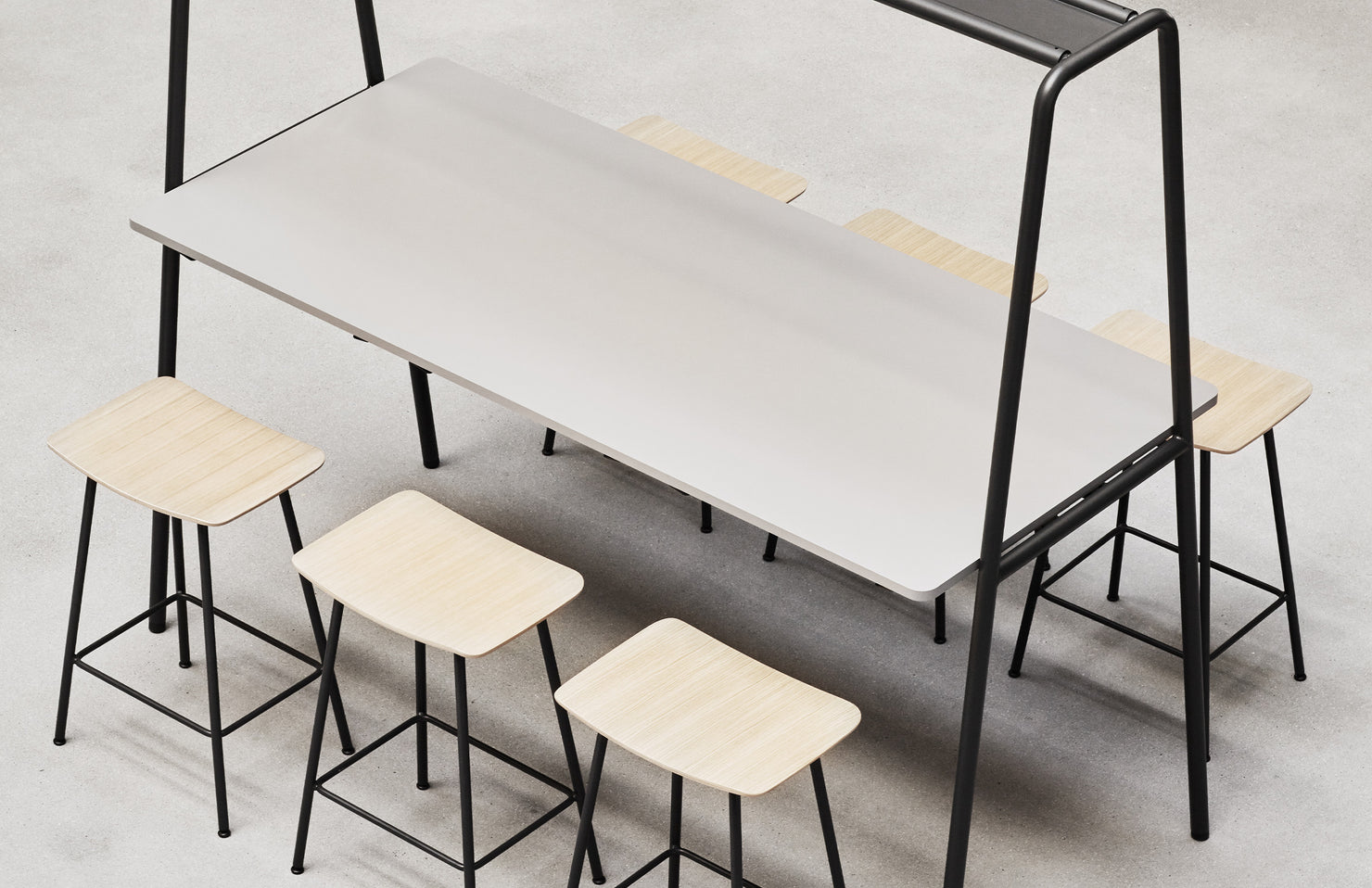 Designed with bent oak seats and tubular steel frames, Four Stool is the perfect minimal companion to Four Design Tables.