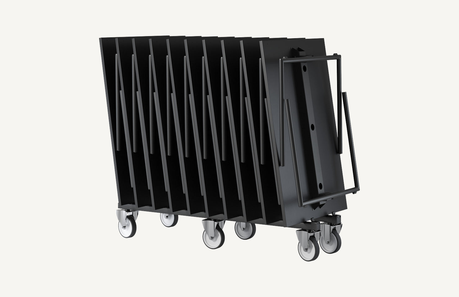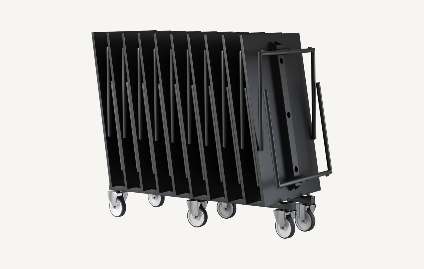 An easy-to-navigate trolley that can hold up to 10 folded tables.