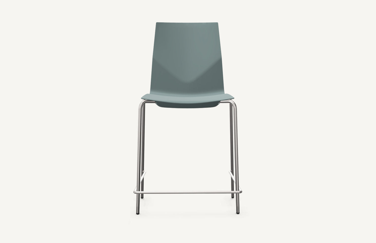 A durable, counter-height stool designed for comfort and efficiency, with a supportive V-back, easy stacking, and everyday resilience.