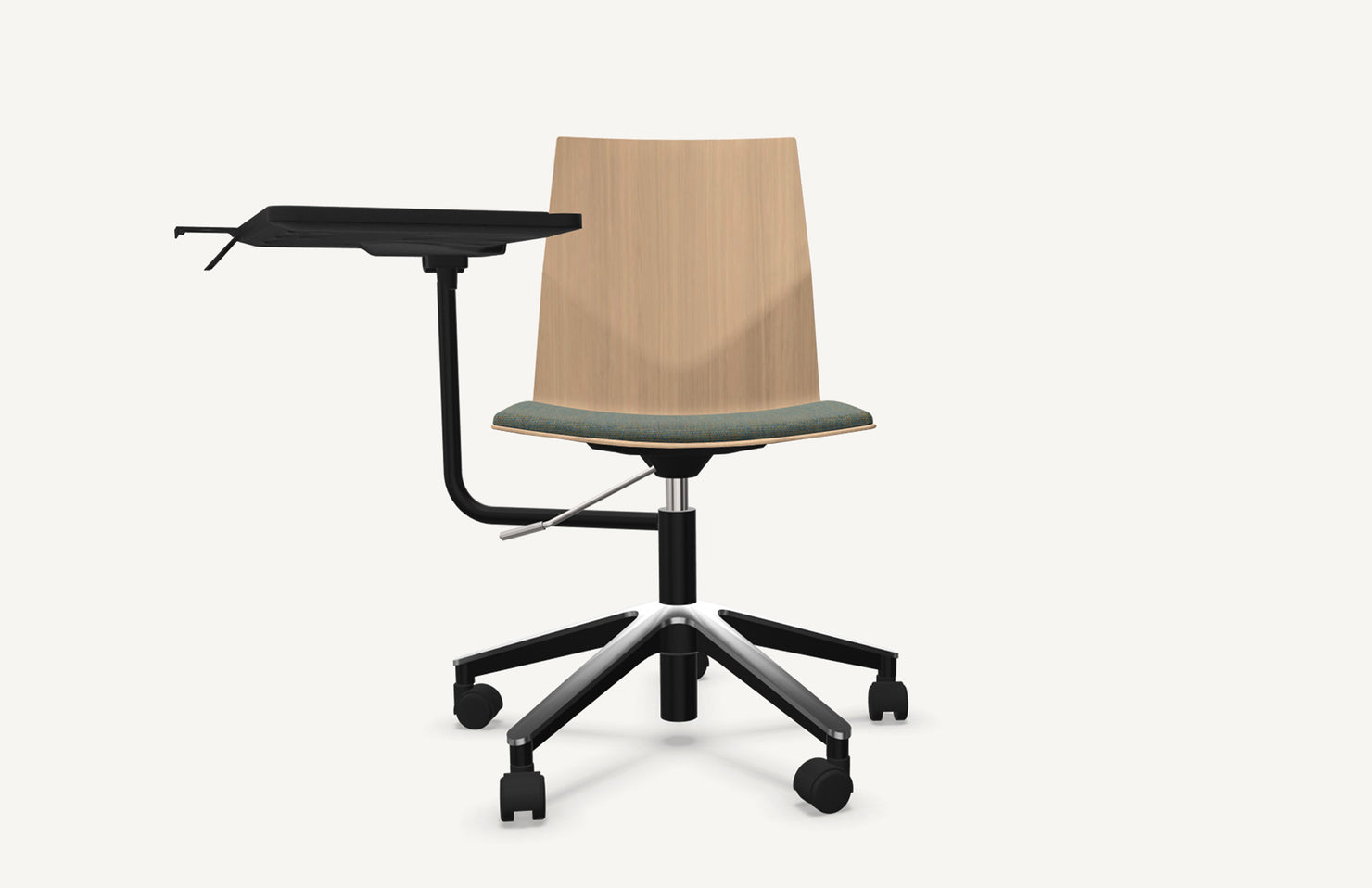 A Wheeler take on the classic FourCast chair with adjustable height and smooth-rolling casters. The InnoTab Tablet Arm transforms the chair into an instant workstation.