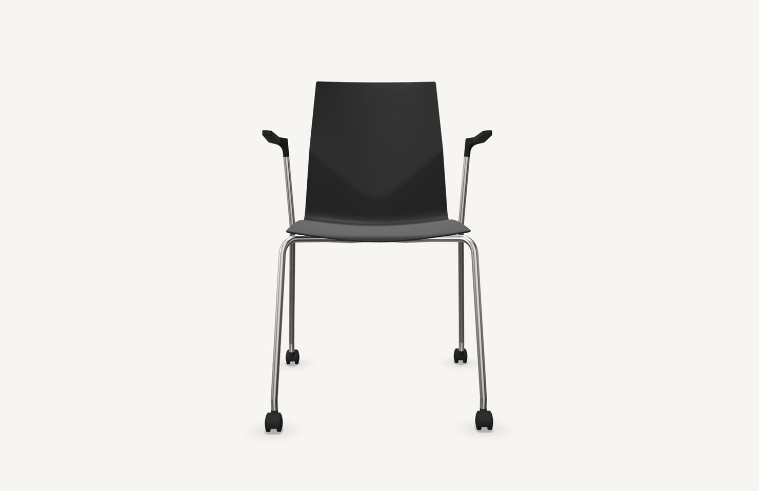 Known for its versatility, durability, and comfort, the FourCast collection can be specified in endless ways and for any type of public setting. Featured here with a 4-leg caster base, polypropylene shell, and arms.