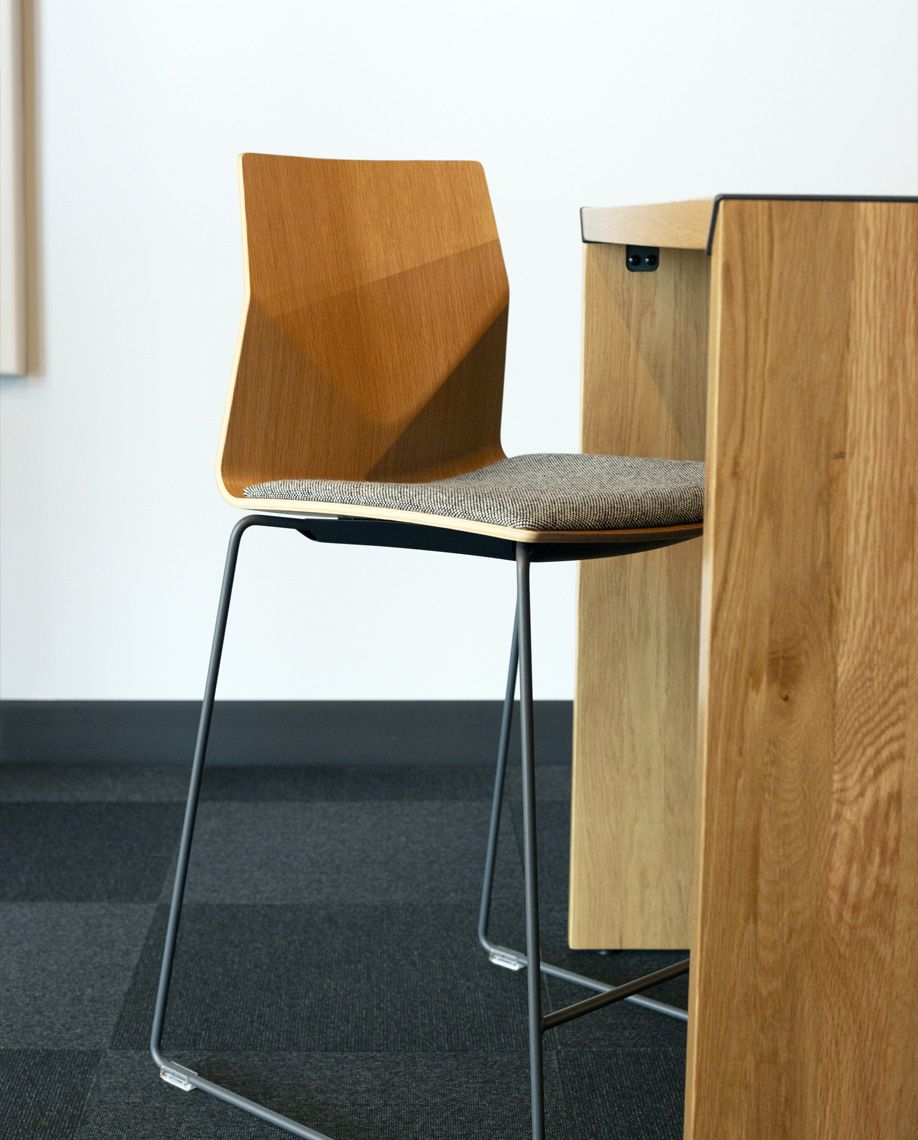 A durable, stackable, and comfortable bar stool with the iconic lines of the FourCast Collection.