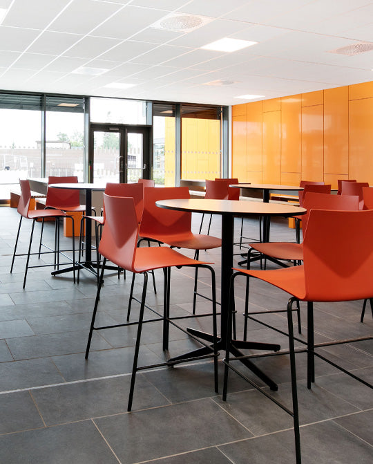 A durable, stackable, and comfortable counter stool with the iconic lines of the FourCast Collection.