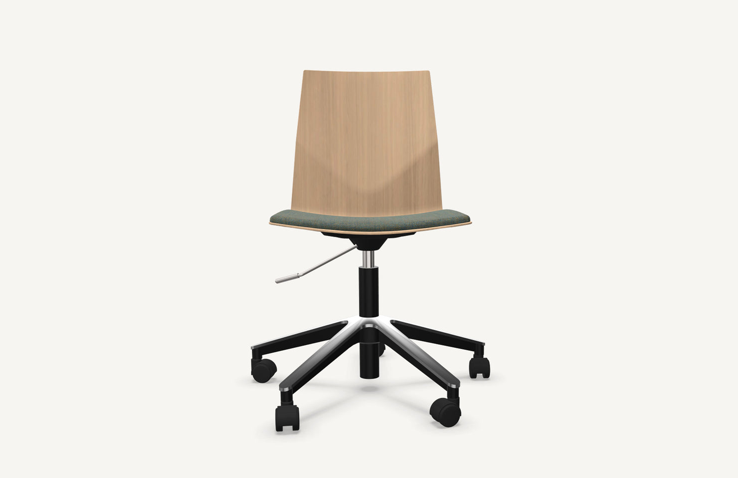 A Wheeler take on the classic FourCast chair with adjustable height and smooth-rolling casters.