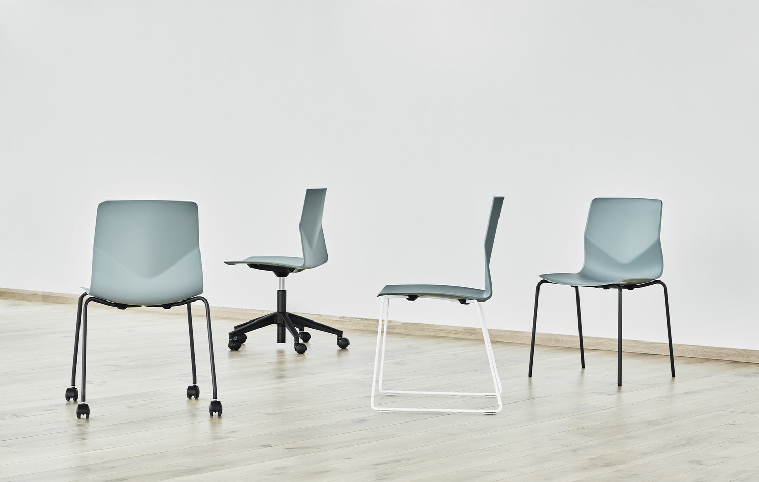 A Wheeler take on the classic FourCast chair with adjustable height and smooth-rolling casters.