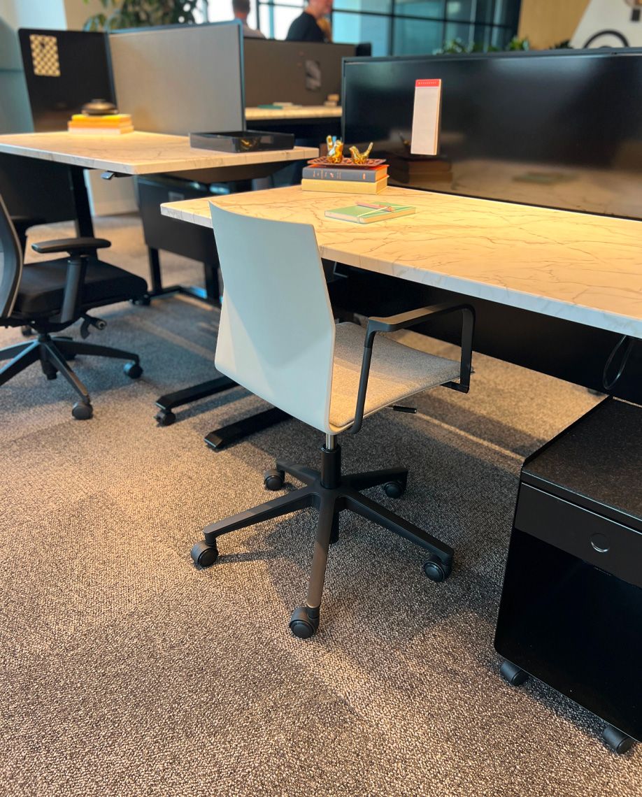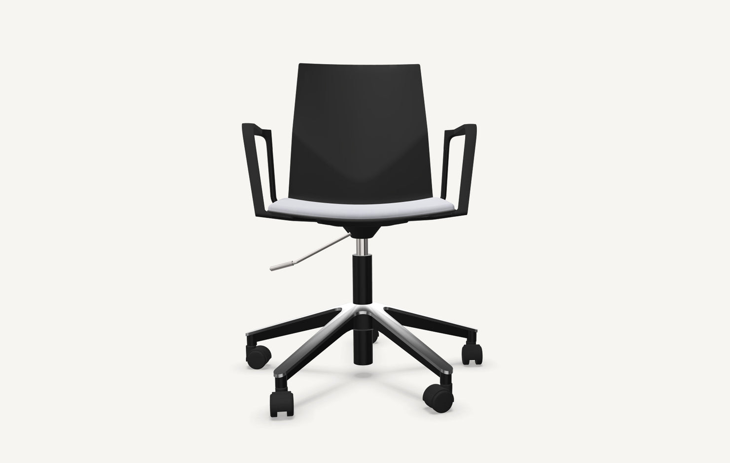 A Wheeler take on the classic FourCast chair with adjustable height and smooth-rolling casters.