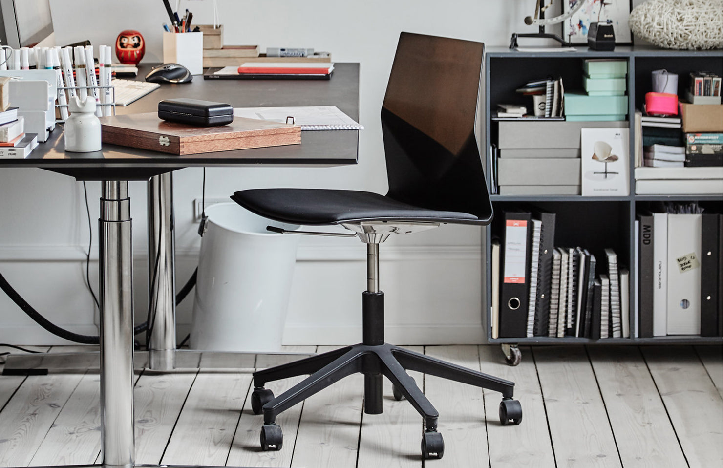 A Wheeler take on the classic FourCast chair with adjustable height and smooth-rolling casters.