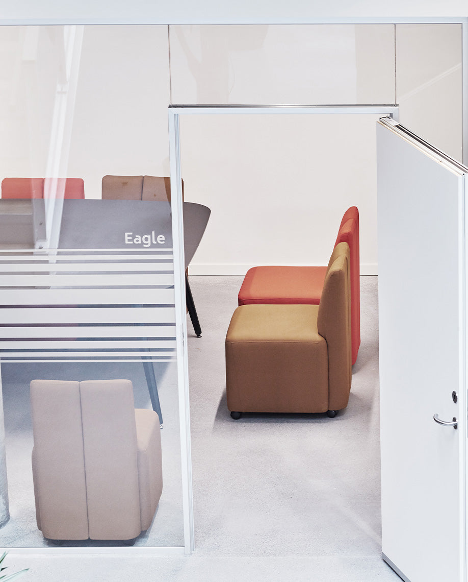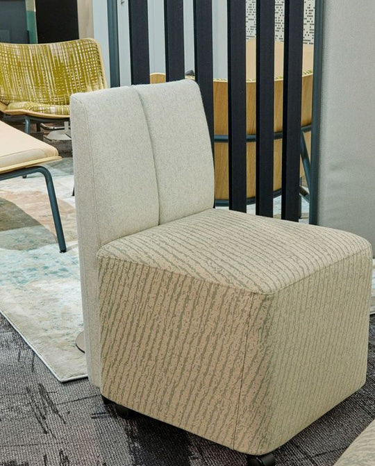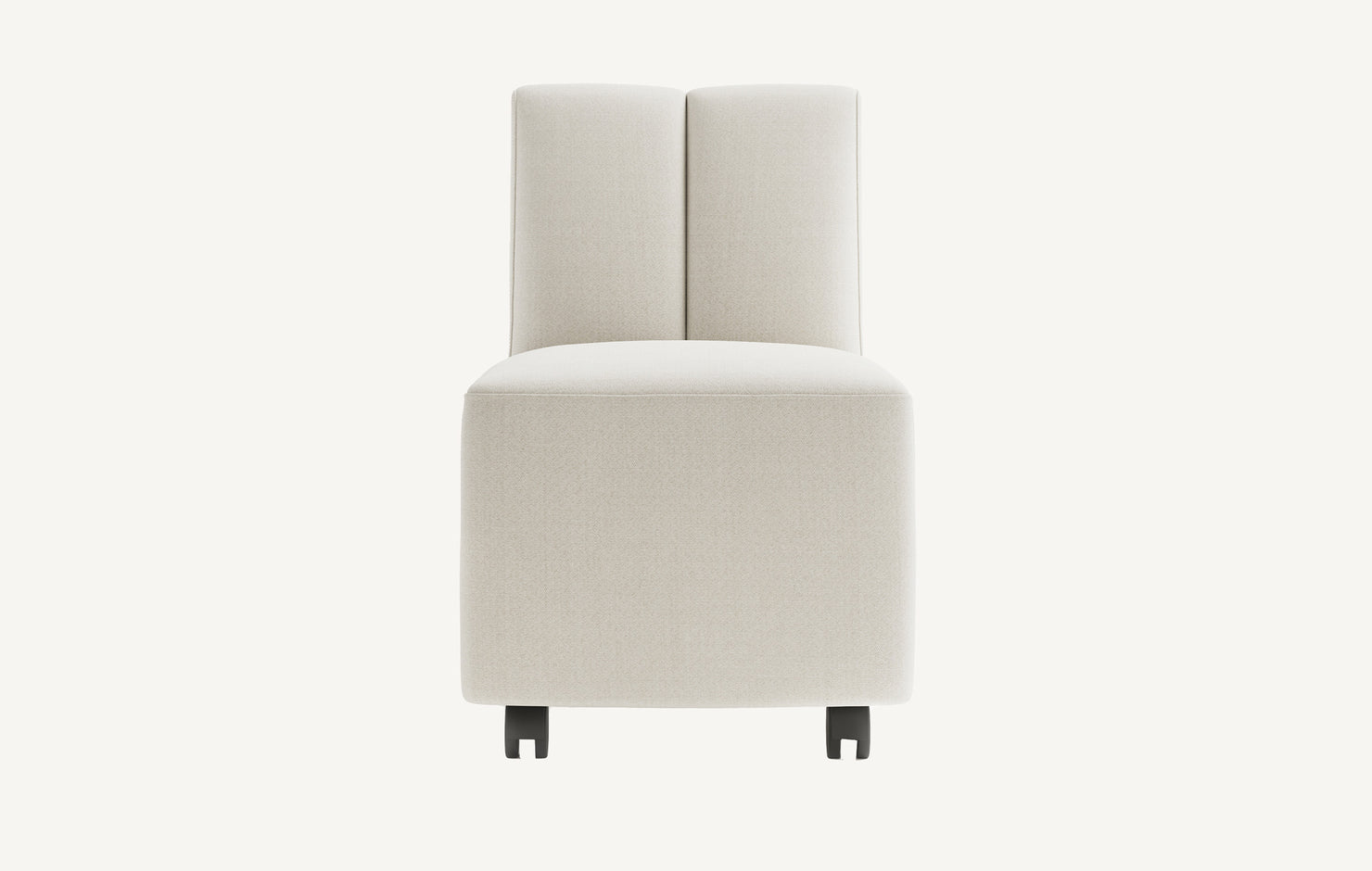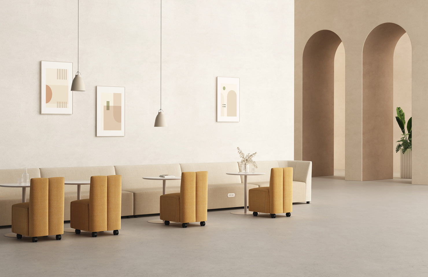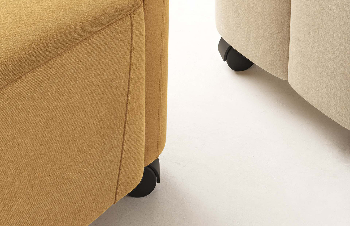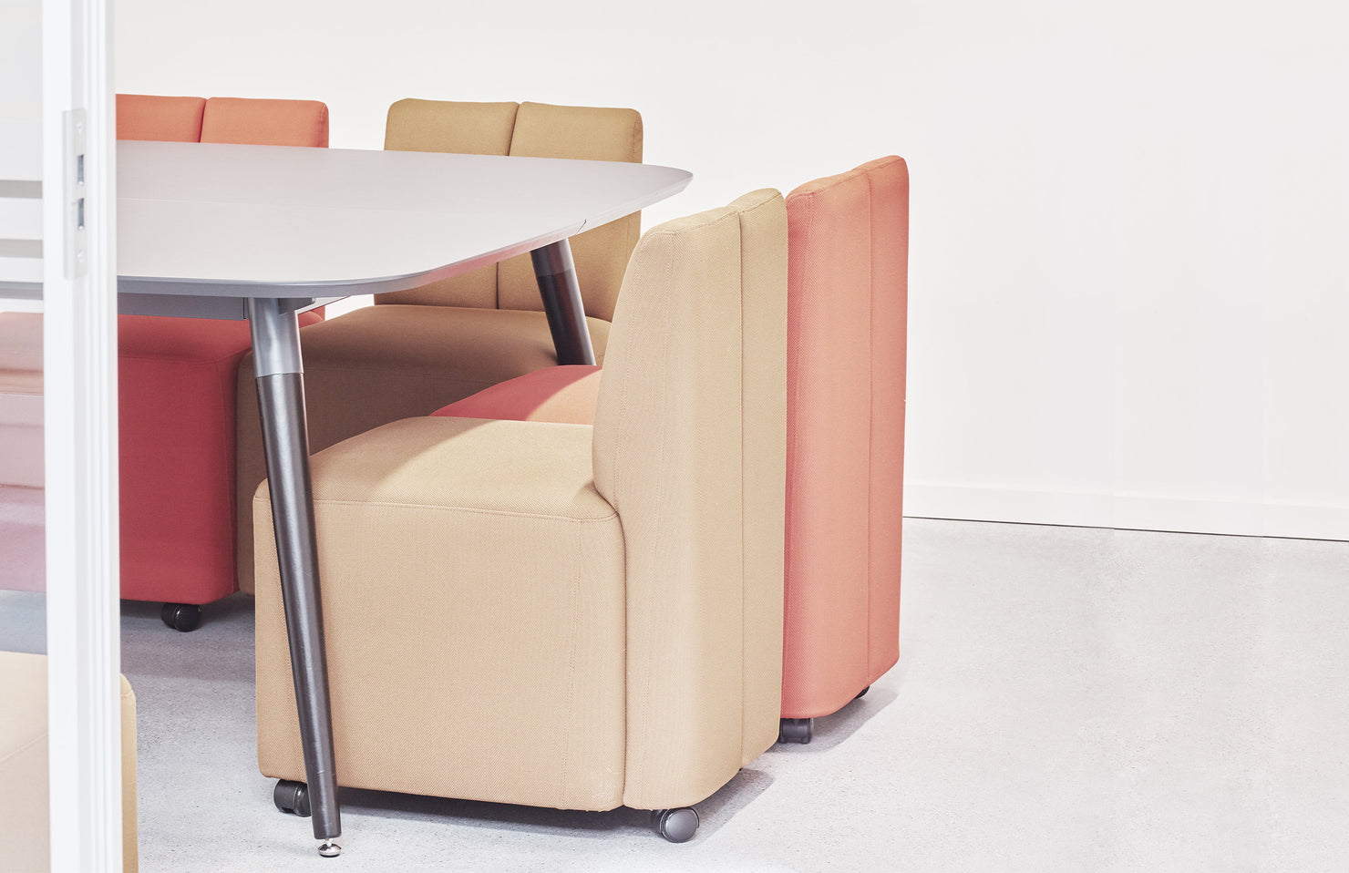A mobile and fully-upholstered seat that is a fun and comfortable addition to meeting and dining spaces.
