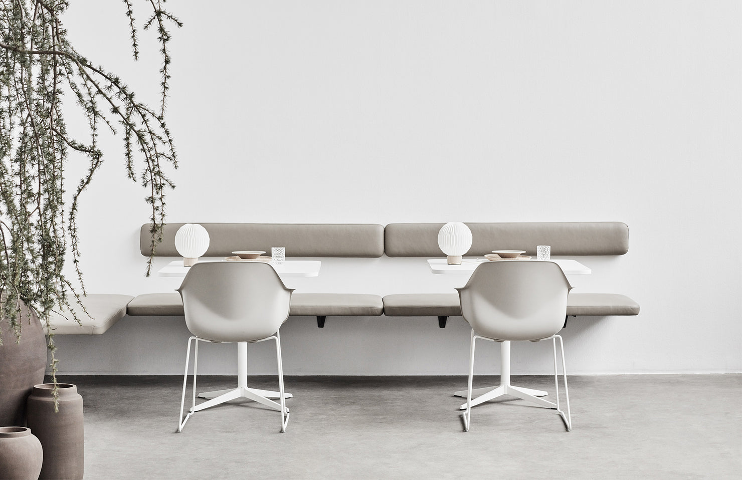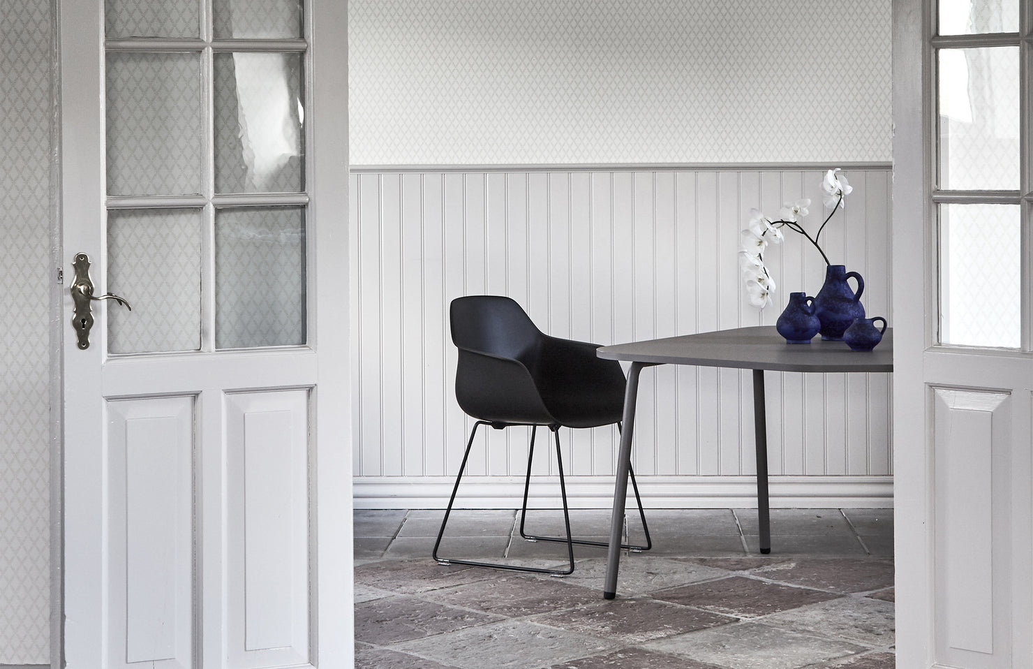 Armchair with a roomy, relaxed sit for informal or dining areas and collaborative spaces.