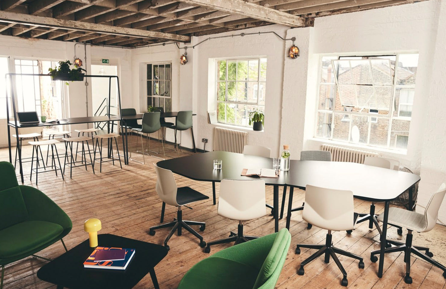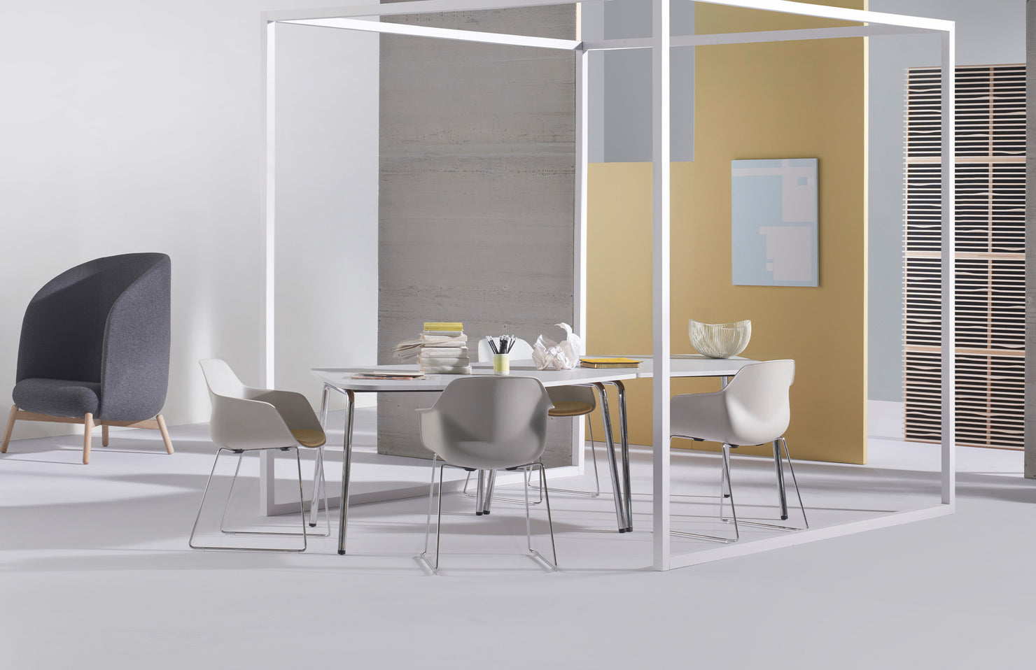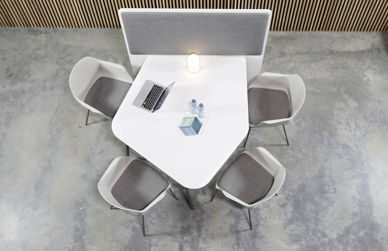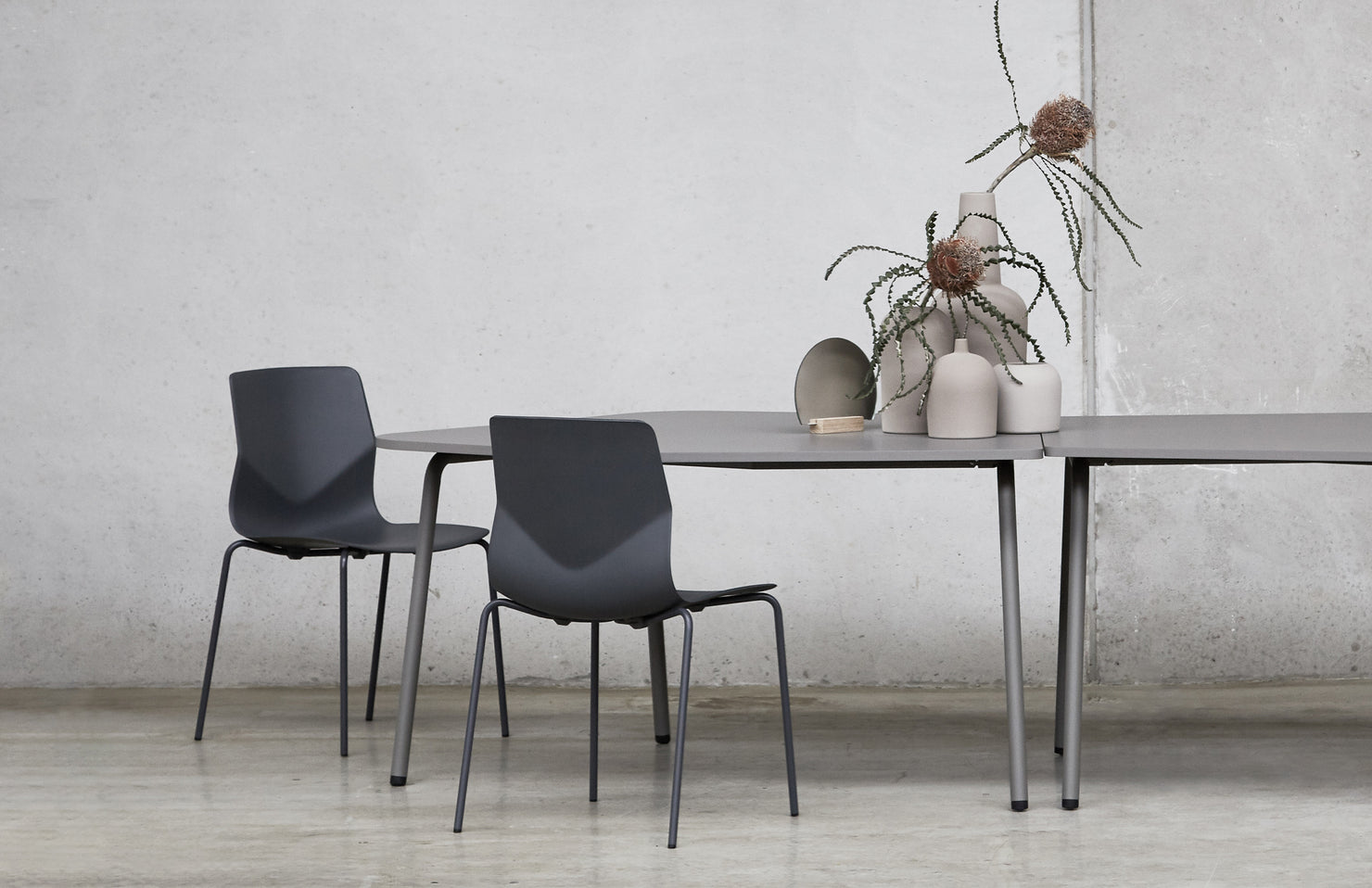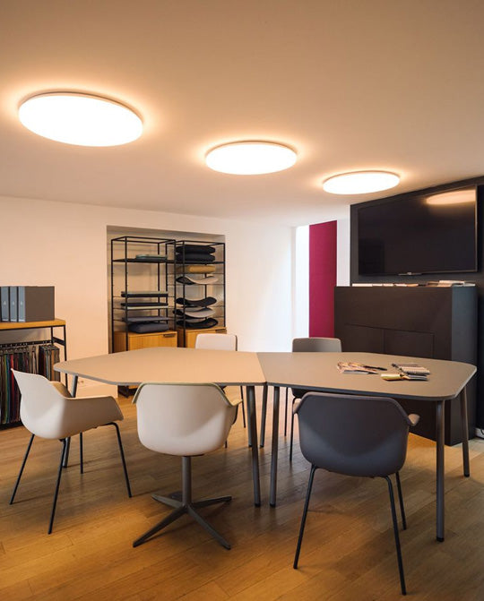 An organic shape allows more comfortable, roomier seating than many traditionally straight-angled conference tables.