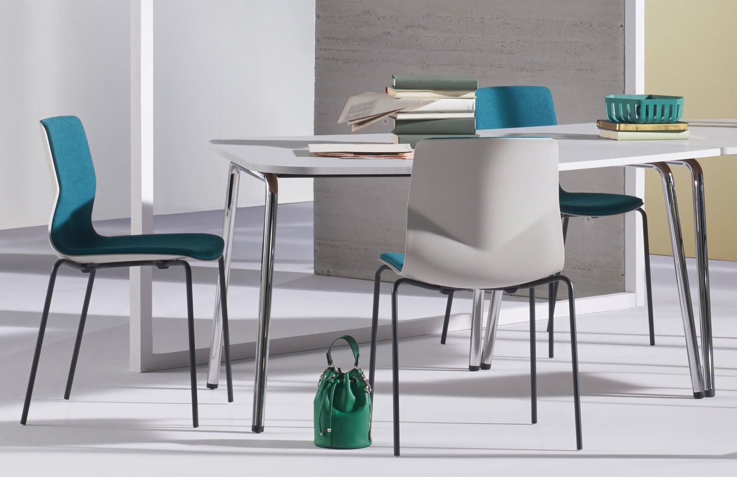 - Integrated casters on two legs
