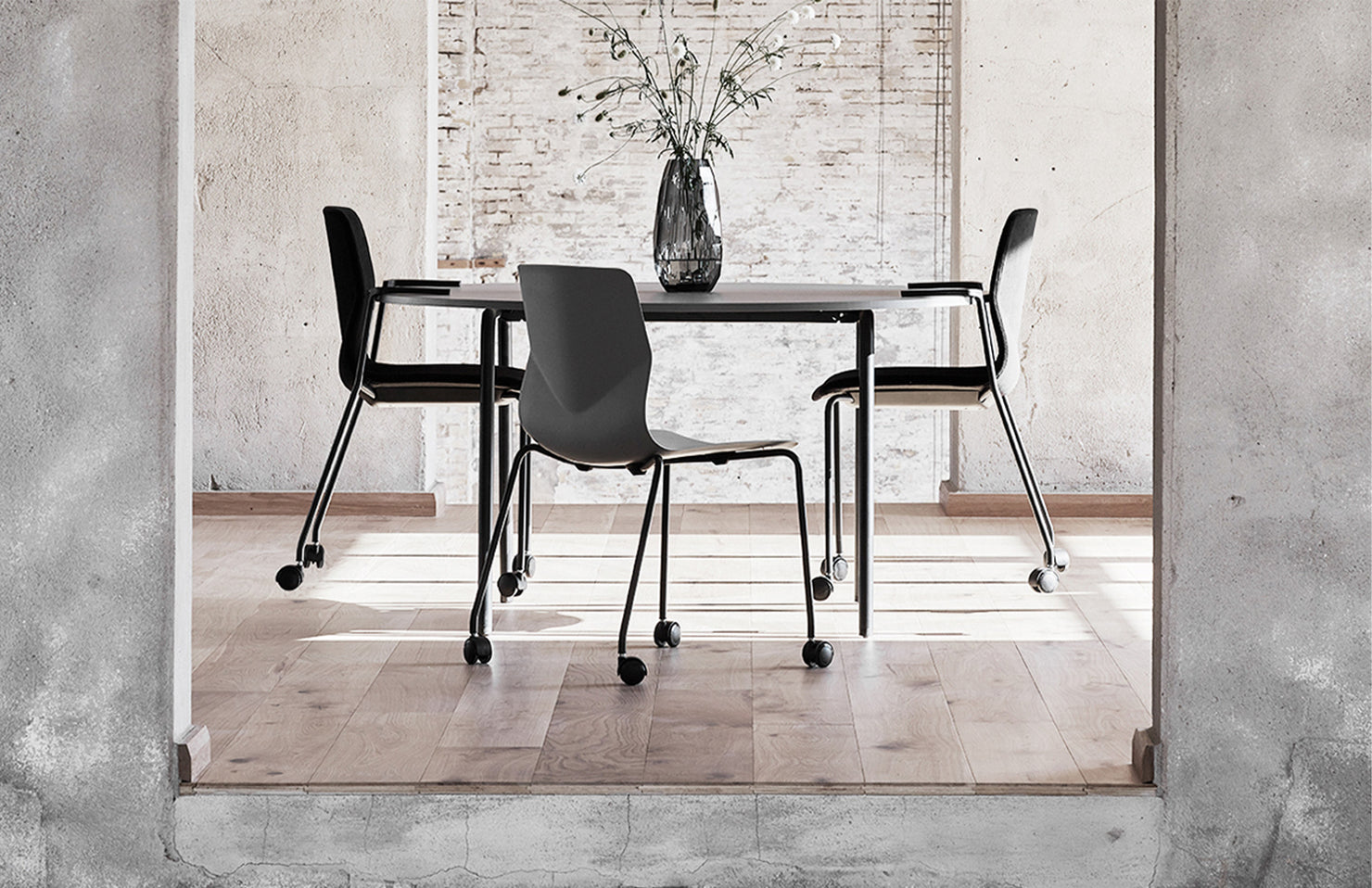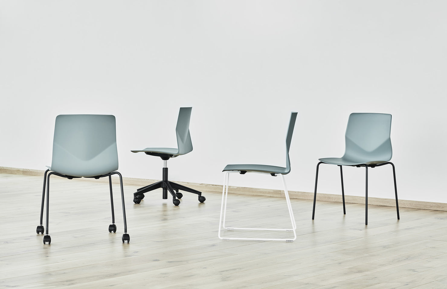 FourSure® has a durable seat shell with a generous seat and organic curves. Featured here with a 4-leg caster base and polypropylene shell.