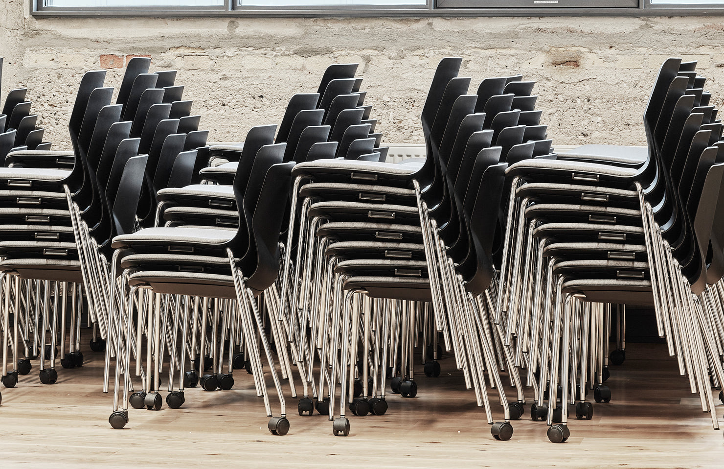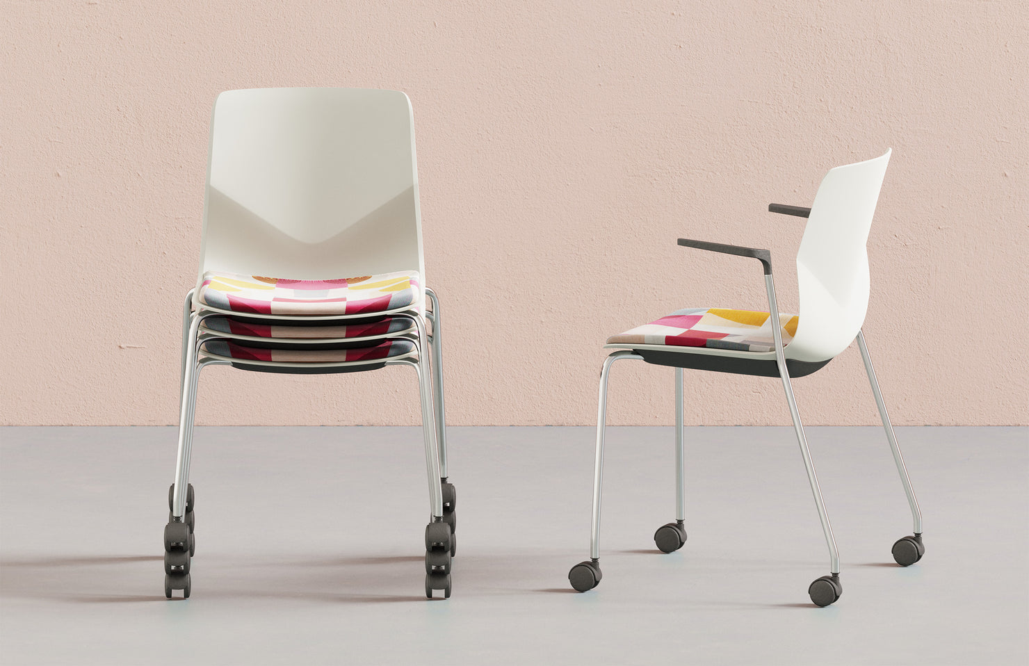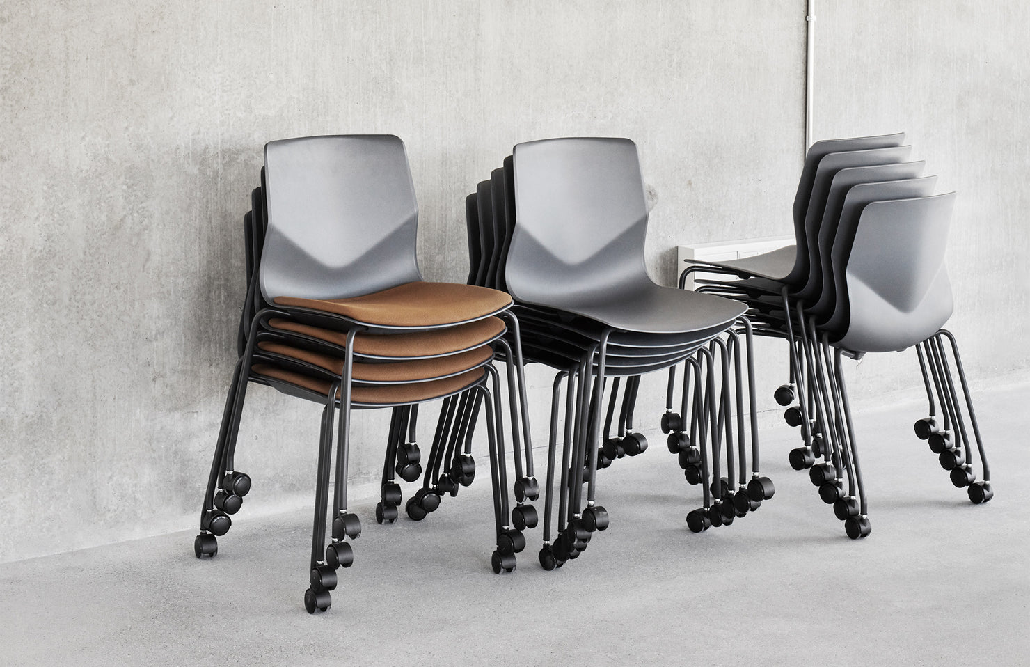 FourSure® has a durable seat shell with a generous seat and organic curves. Featured here with a 4-leg caster base and upholstered seat pad.