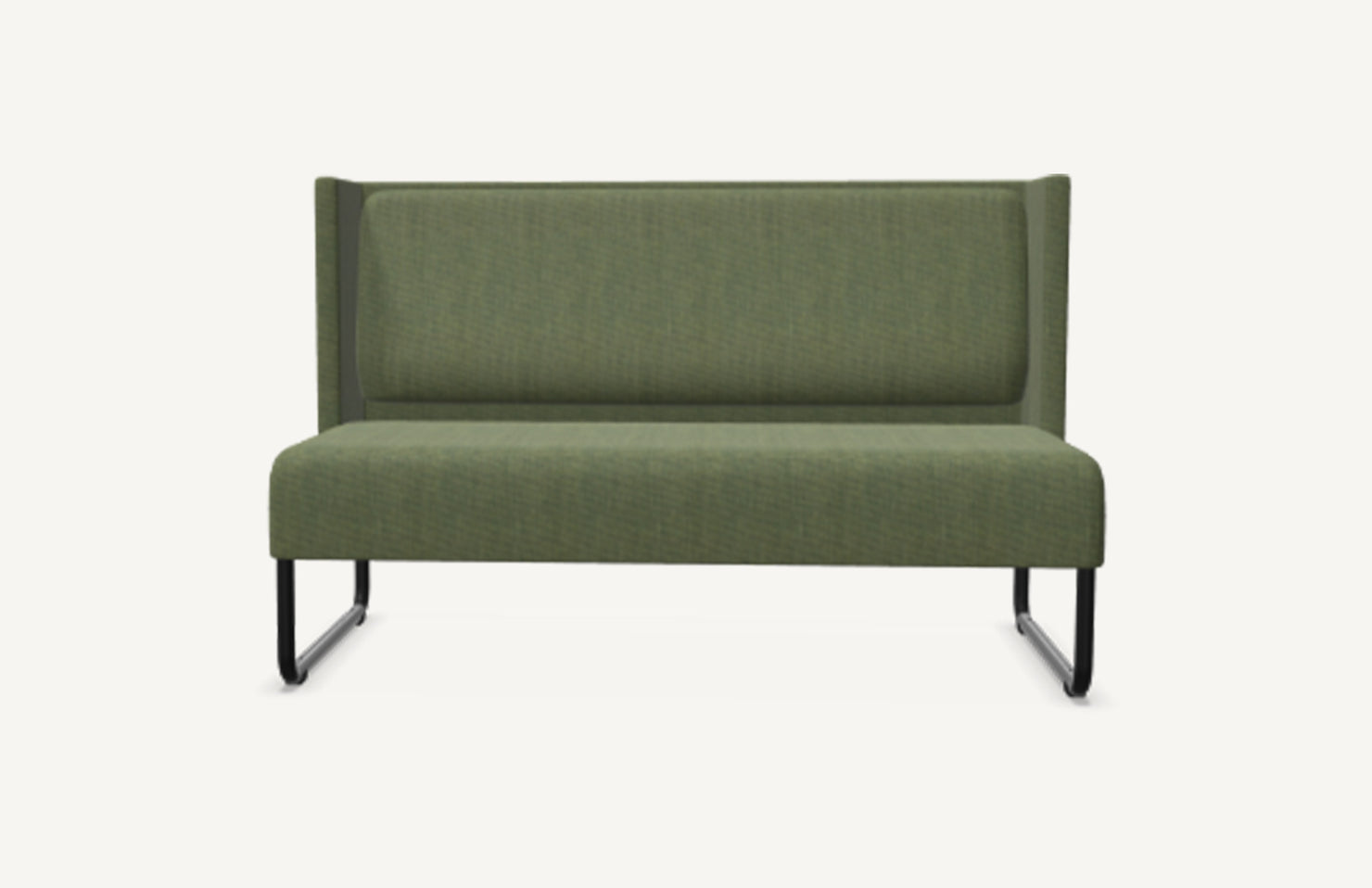 Modern, classic two-seat sofa that provides some privacy and improved acoustics within its clean-lined aesthetic.