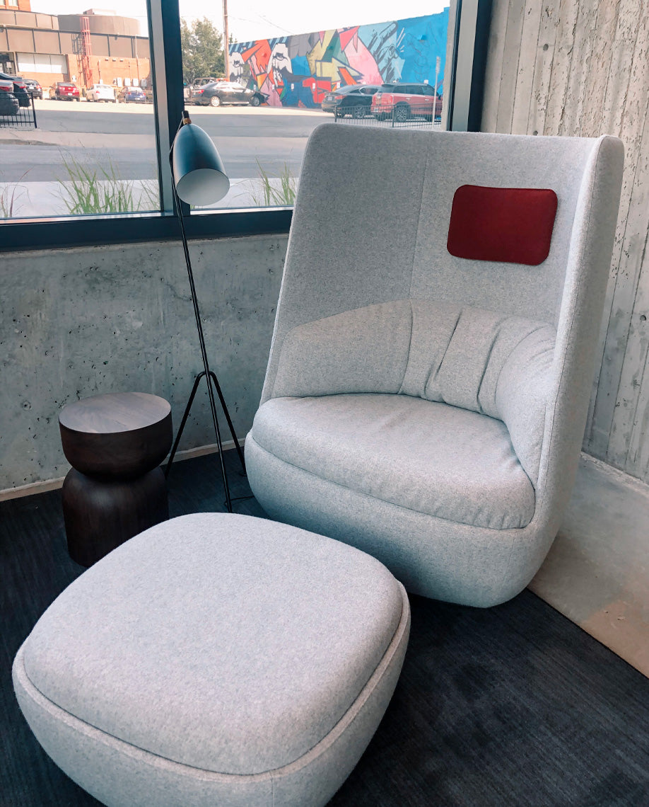 A Hightower favorite, the comfort of down-filled pillows, a high back, and a swiveling base makes Gimbal a comfortable sanctuary. The Swivel Base facilitates 360° of motion.