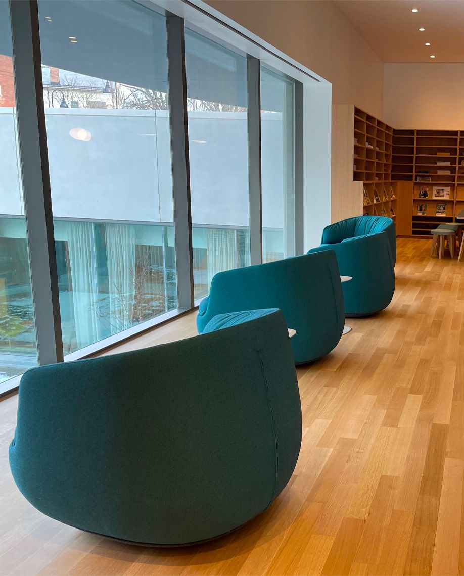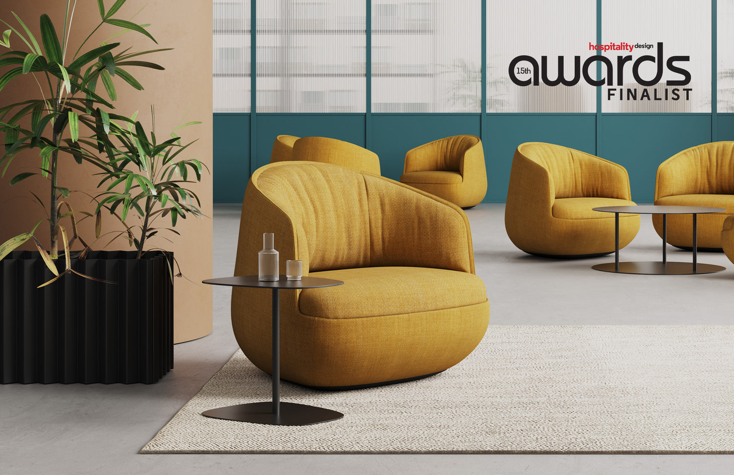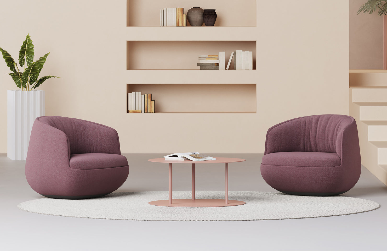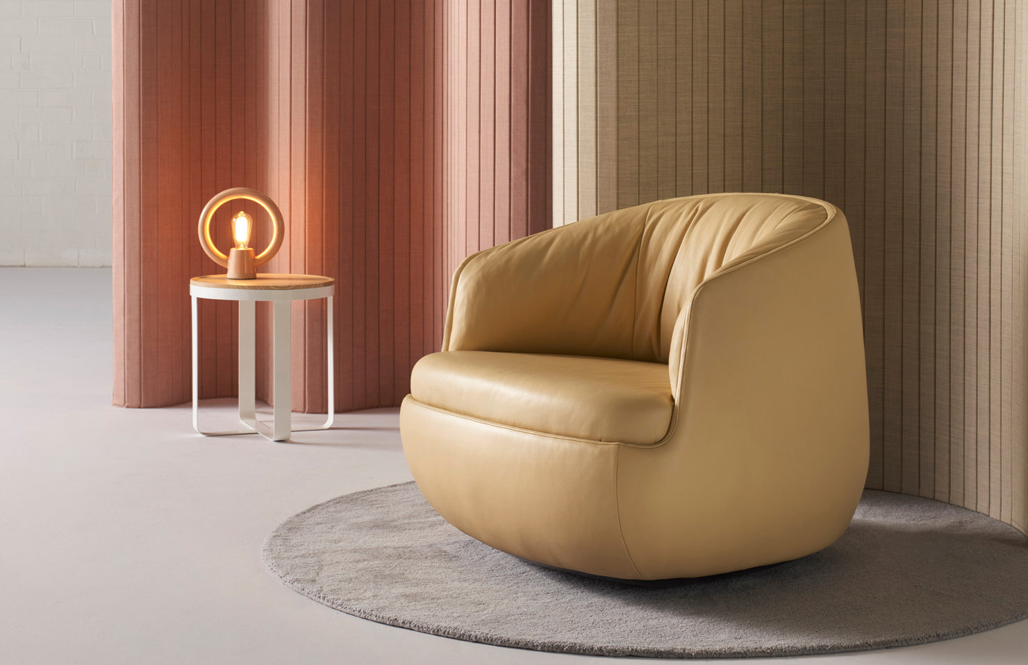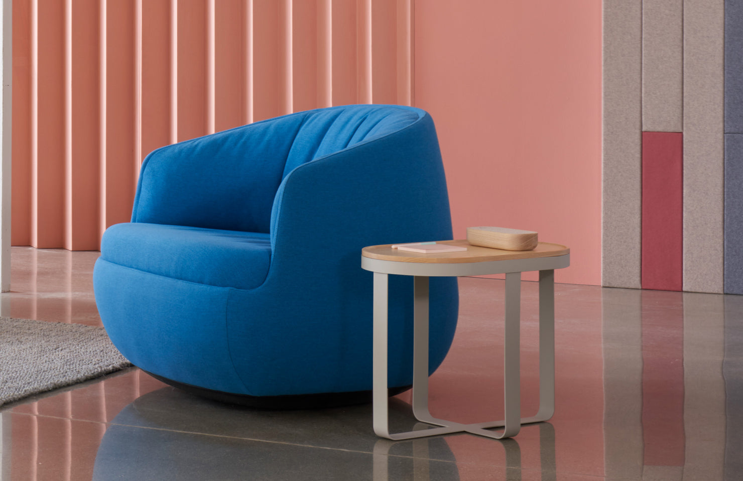 A Hightower favorite, the comfort of down-filled pillows and a swiveling base makes Gimbal a comfortable sanctuary. The Swivel Base with Auto-Return facilitates 90° of motion.
