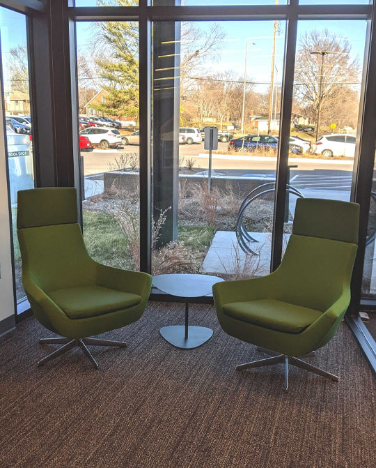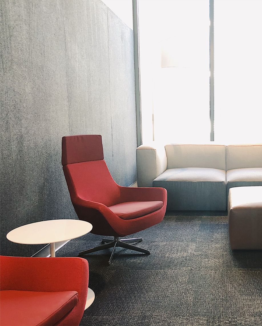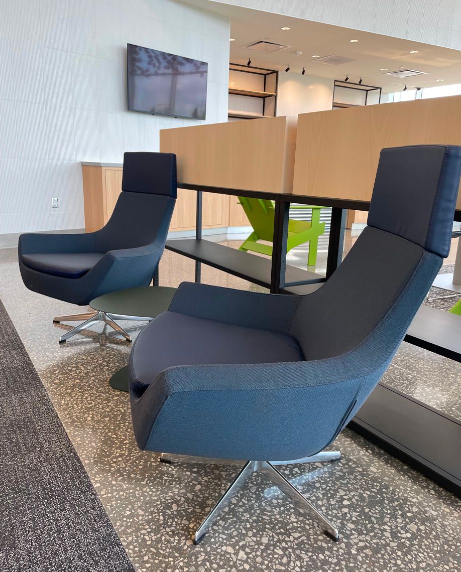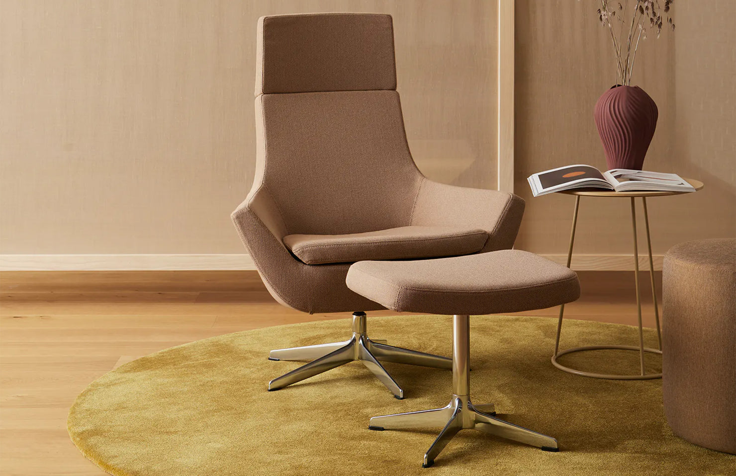 The balance between the small footprint and the inviting angle of the arms makes this chair suitable for any office or lounge setting. The highback design offers additional user support.
