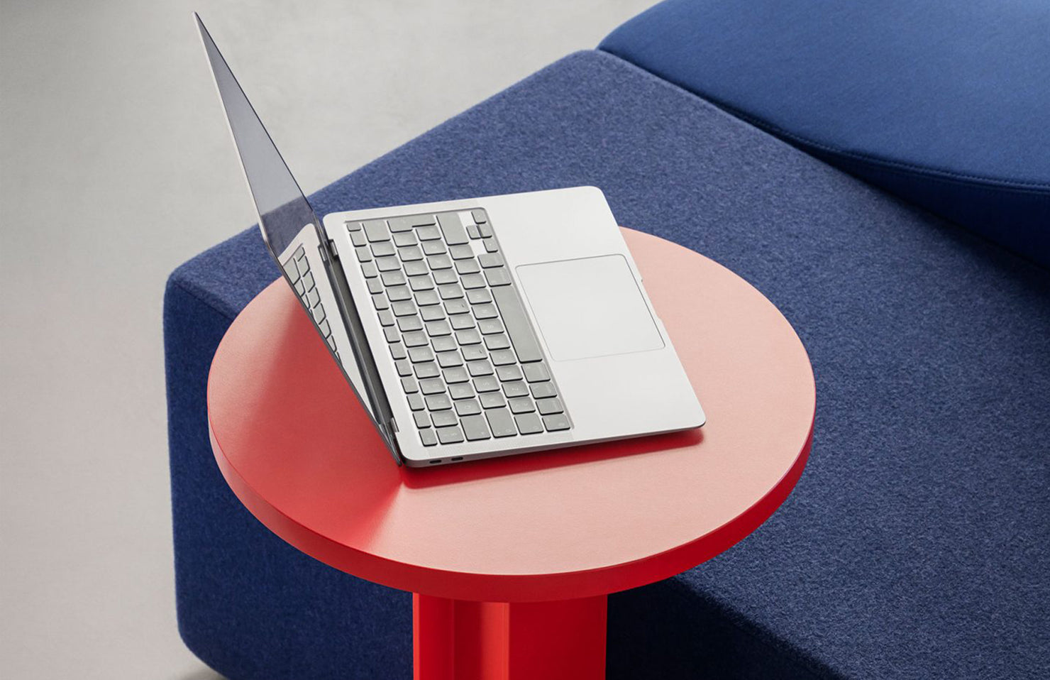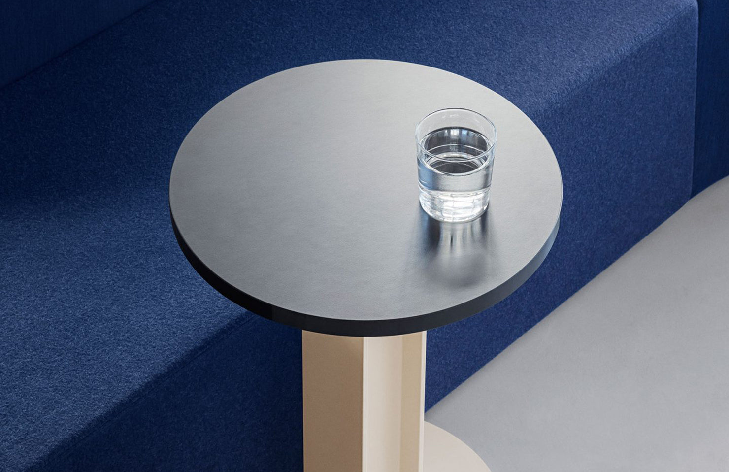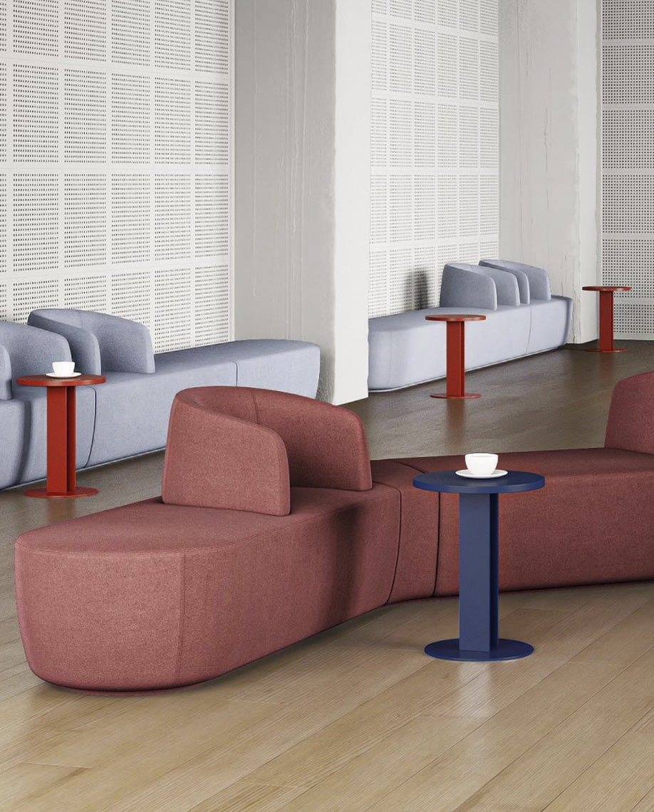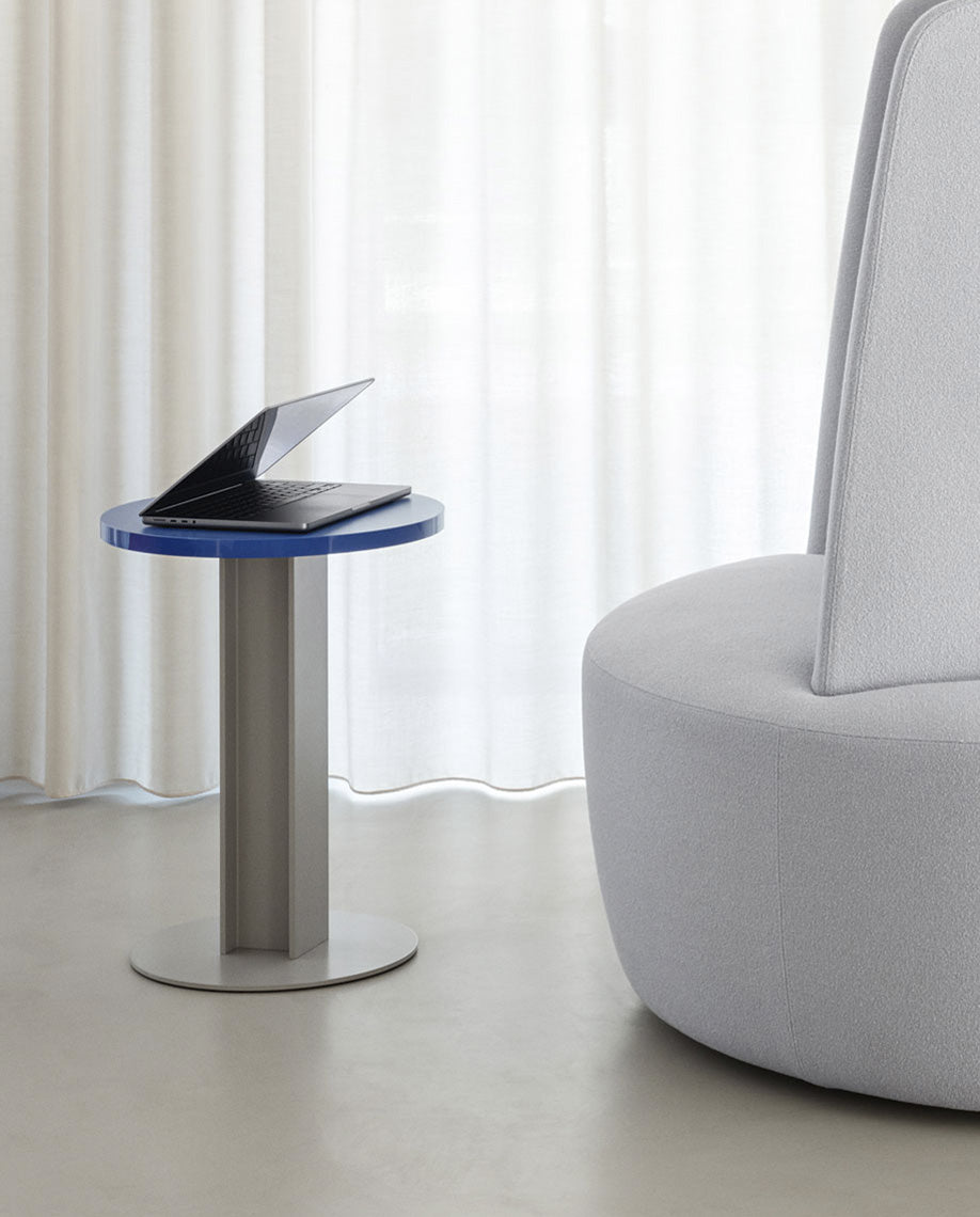 Part of a table collection that blends industrial craft with playful design, featuring aluminum beams and vibrant, customizable tabletops. Designed for versatility and connection, these sculptural tables bring durability and expression to any space.